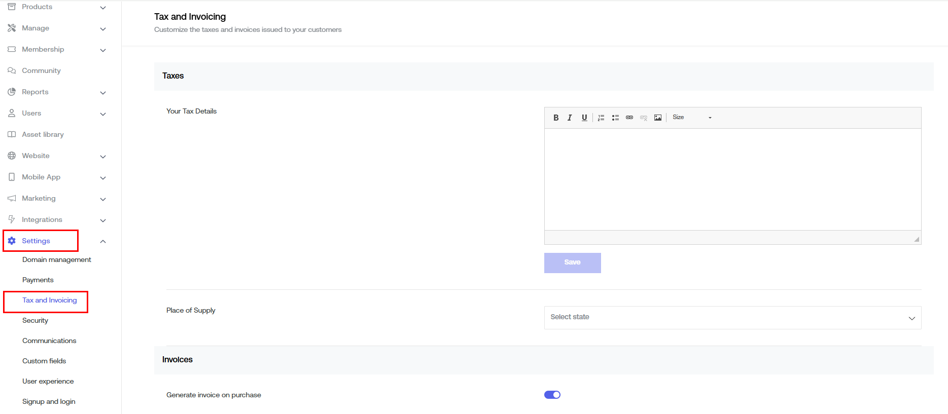 Step 1: From settings, select Tax and Invoicing.