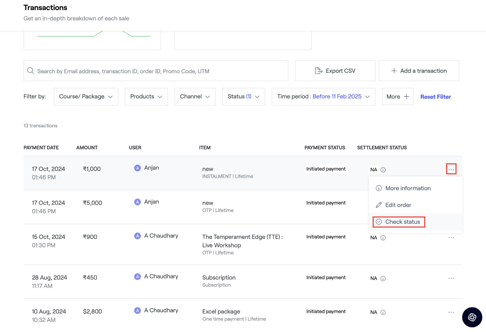 - Click on the three dots next to the transaction.