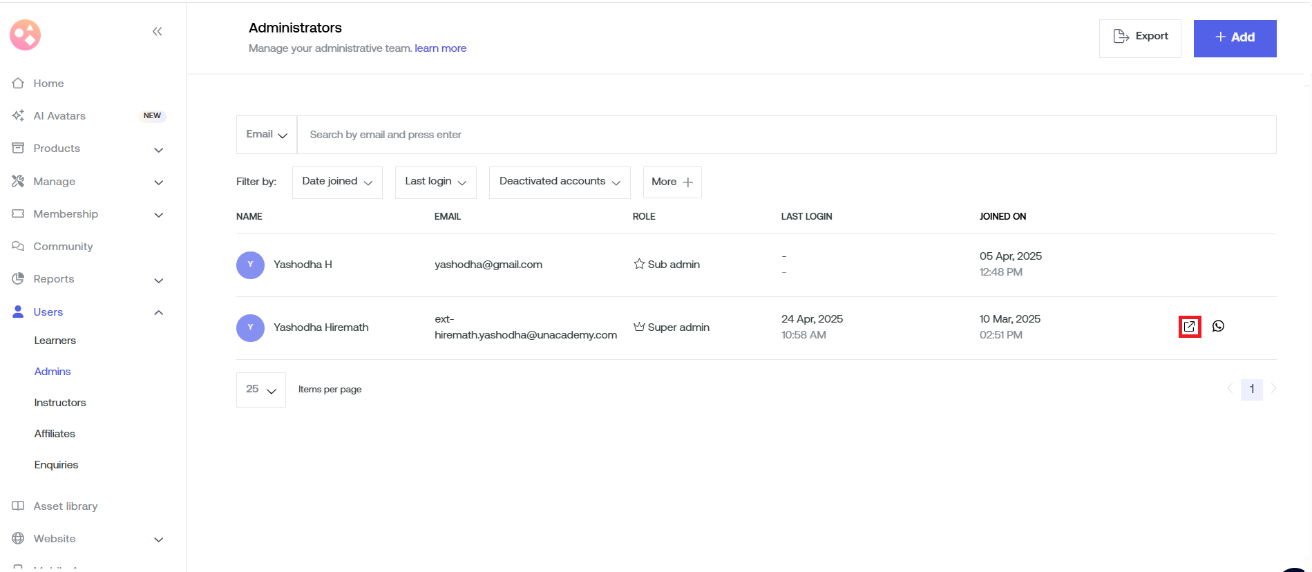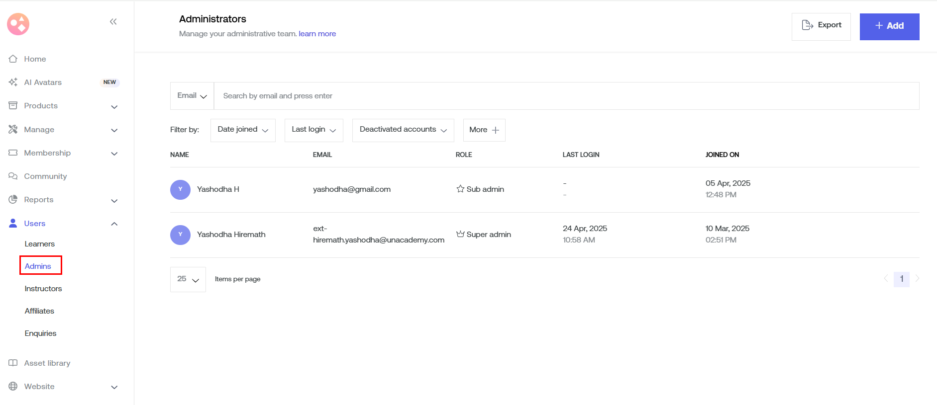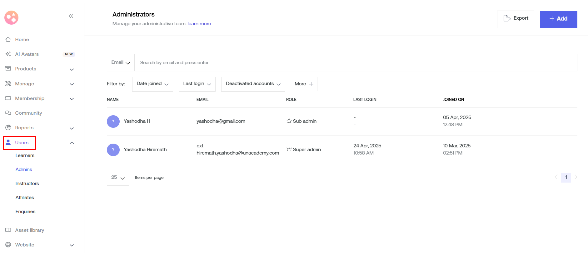 - Log back in using the newly added admin email ID.