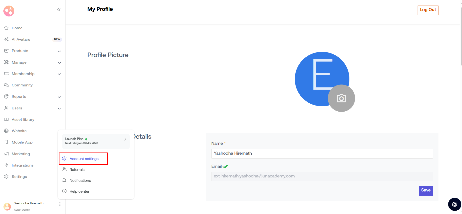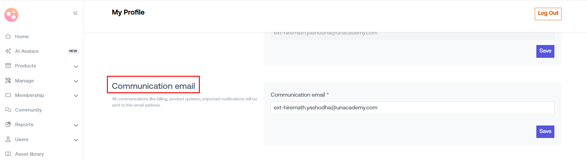 The communication email is where you receive system notifications and important updates from Seekhly. You can update this separately from your admin email by following these steps: