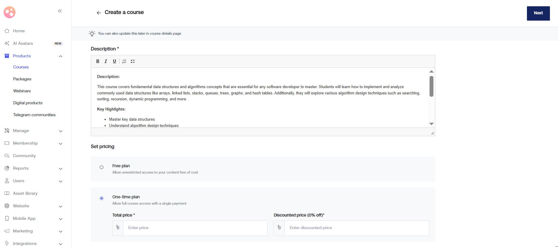 Set a one-time payment, subscription model, or membership-based access.