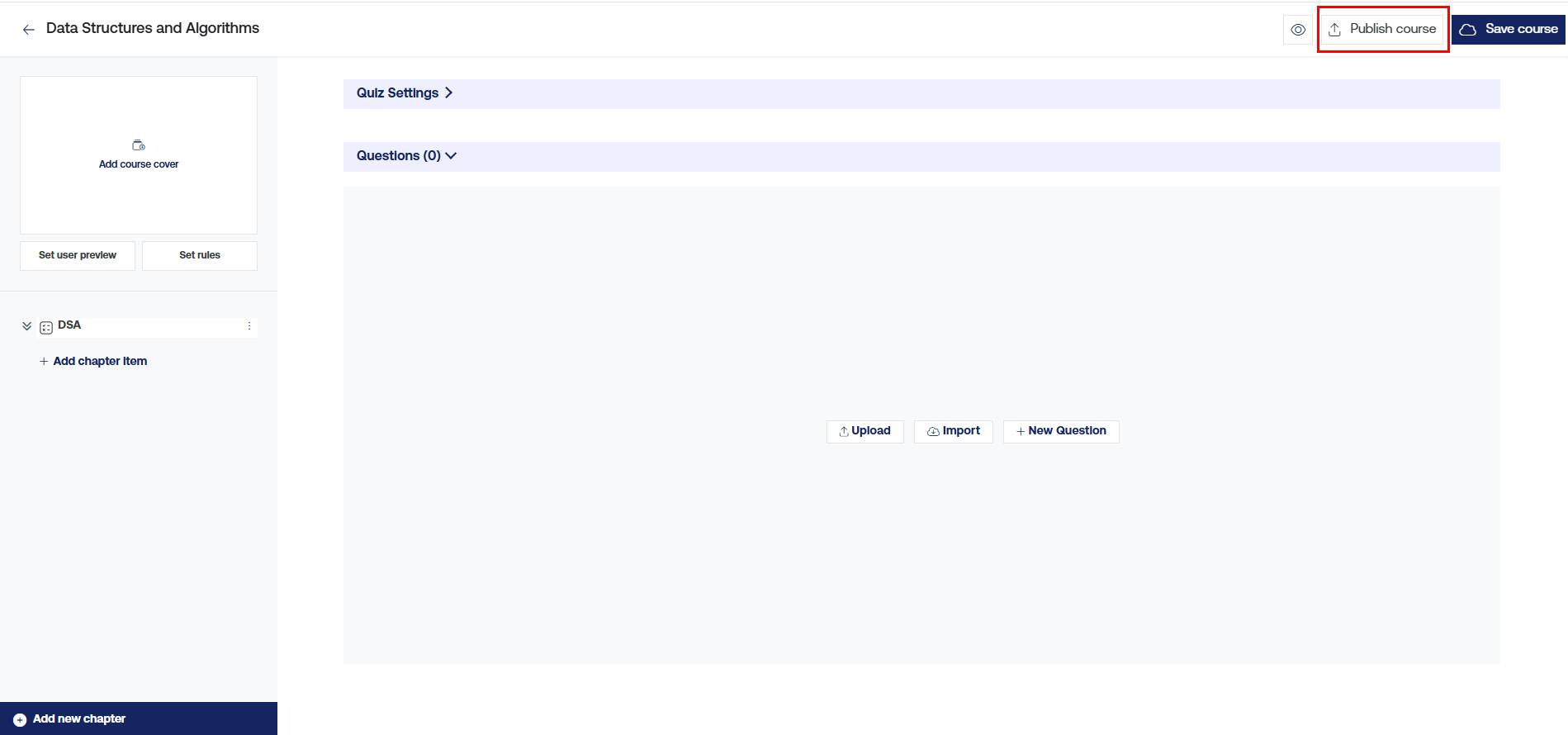 Click on the "Publish" button to make the course live for students.