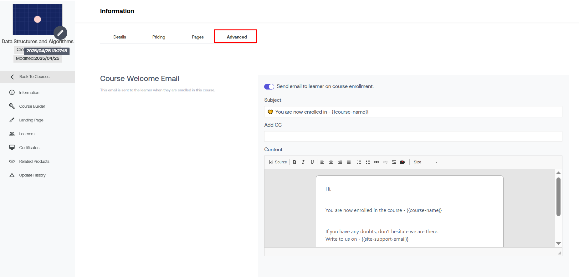 1. Go to Products > Courses. Then click on the "Details" of the course you want to remove from courses.