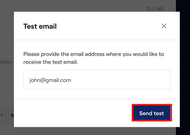 Under the Live preview on the right side, click "Send Test," enter the recipient email address, and click "Send" to test your email.