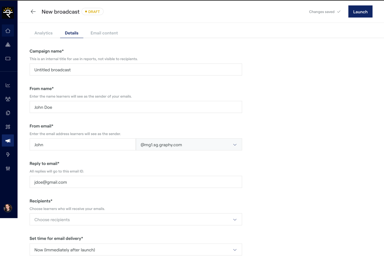 - Reply-to Email: This is the email address where all replies from learners will be sent.