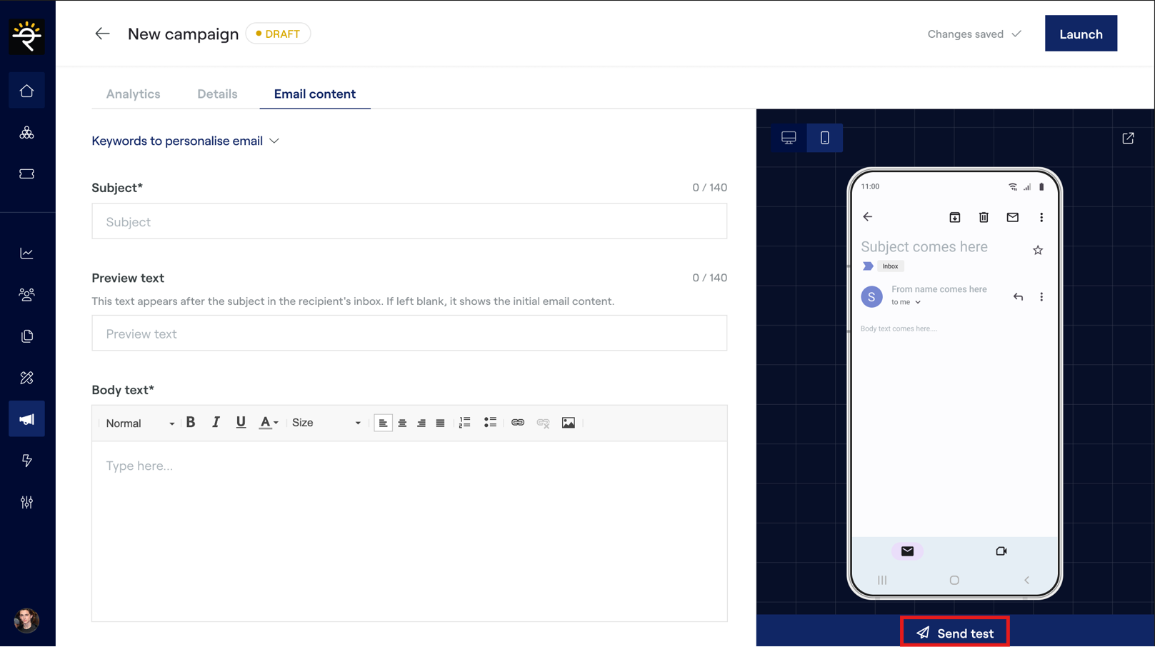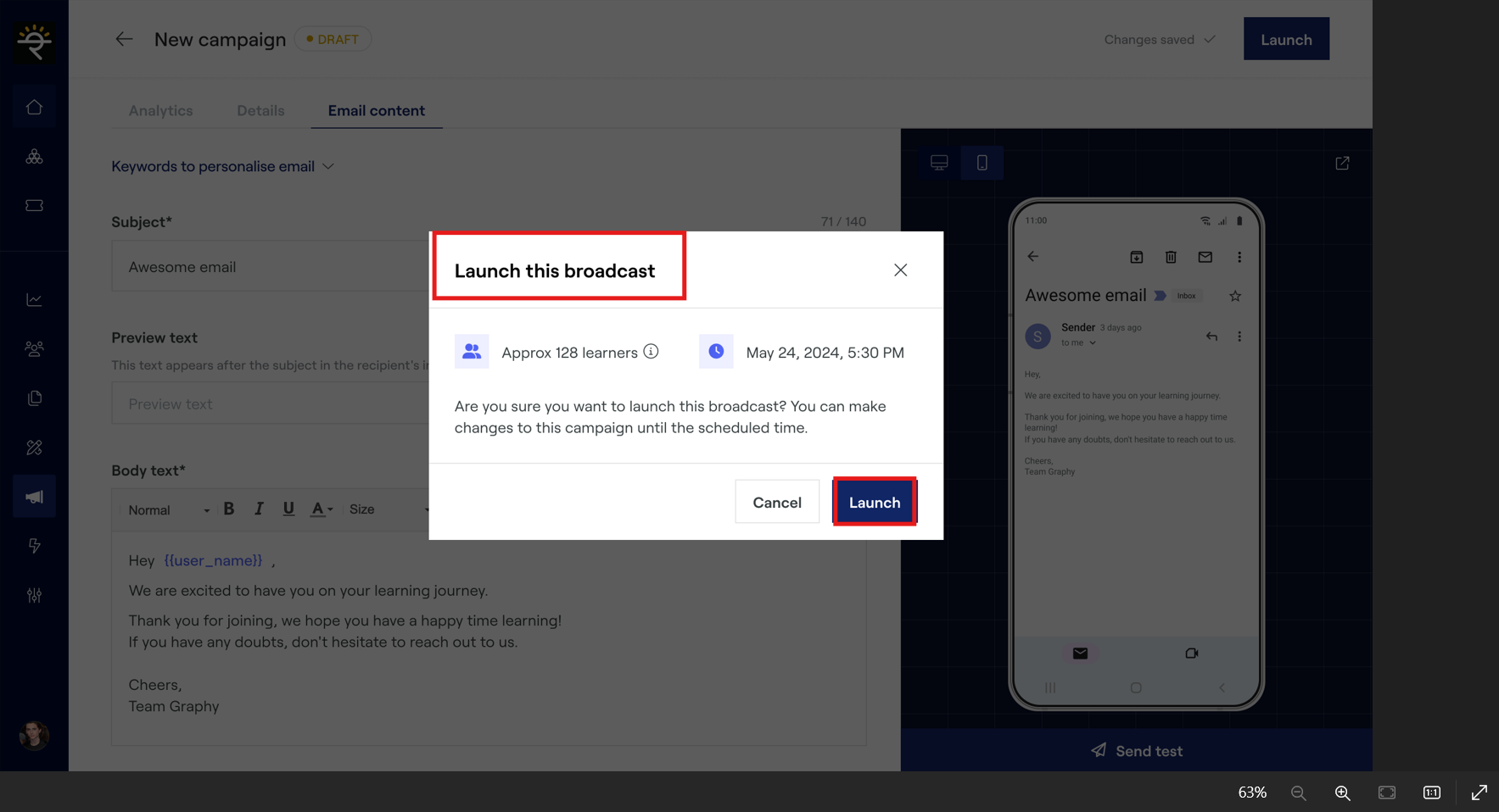 - Click on 'Launch' and review the details shown to finally start the campaign.