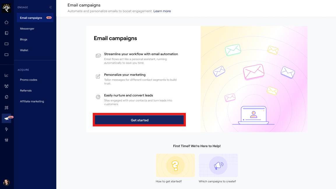 Navigate to Seekhly Dashboard > Left Navigation Panel > Marketing > Email Campaigns.