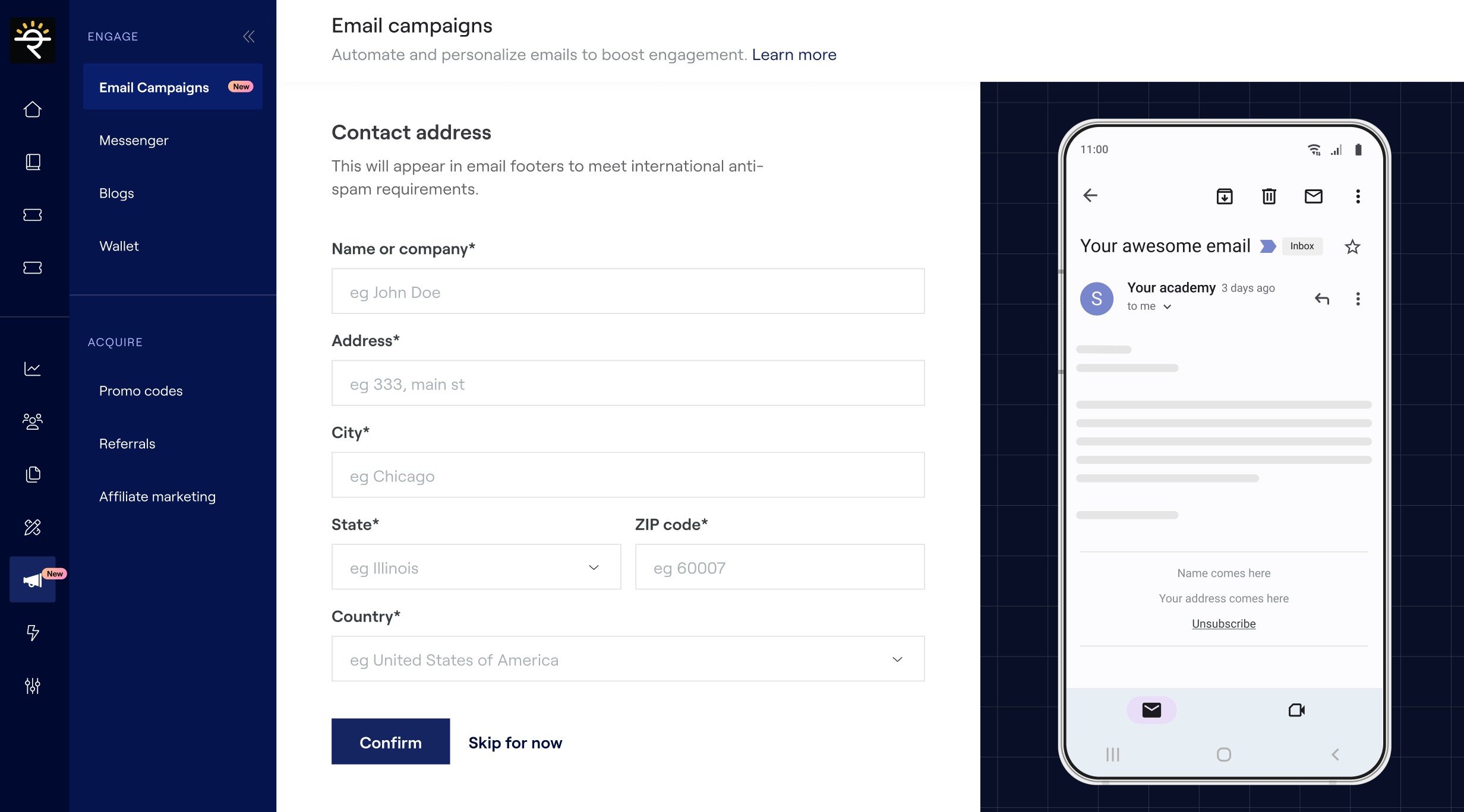 Note: Your contact address will appear in email footers to comply with international anti-spam regulations