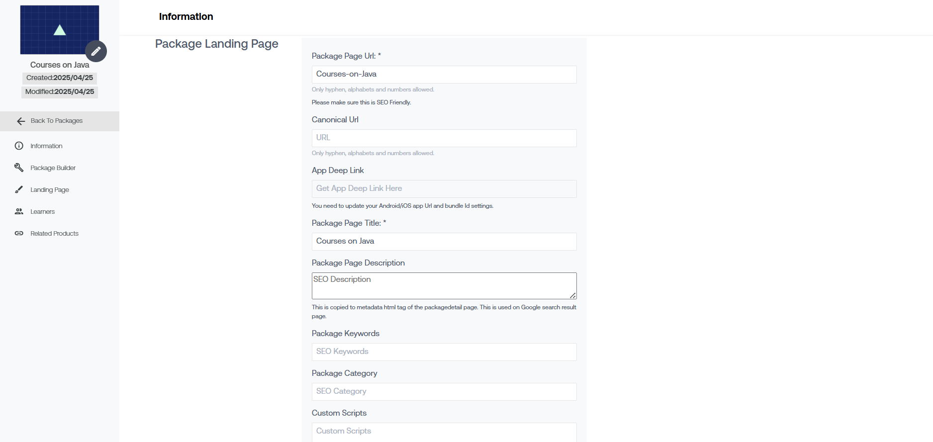 This article is a step-by-step guide on creating a Package and providing all the necessary details before making it live.