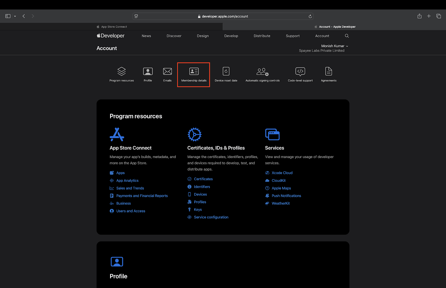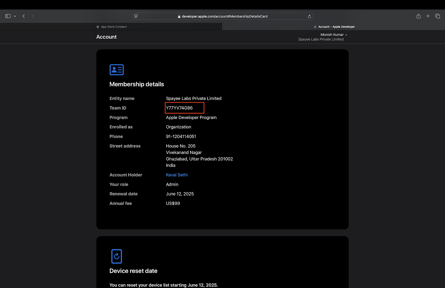 This ‘Team ID’ value is used for developing applications and uploading APNs keys to firebase to enable notifications on iOS apps.
