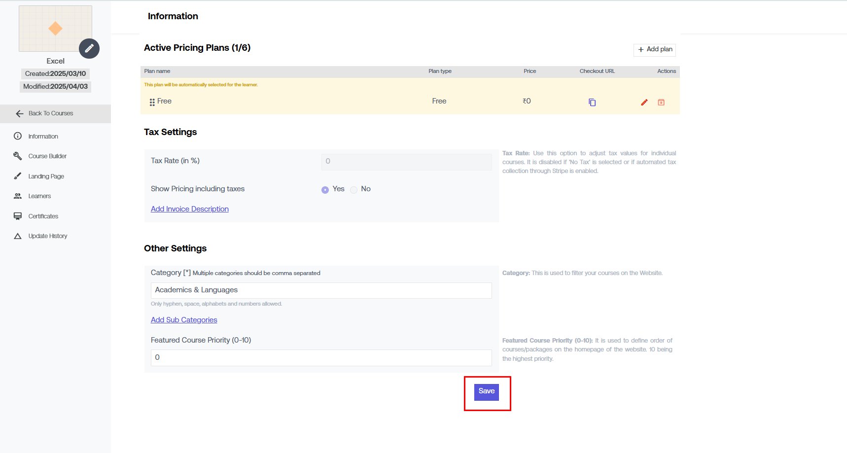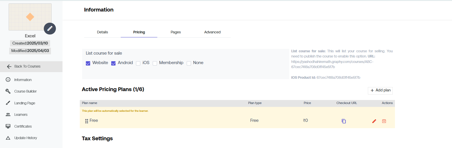 2. Now select 'Pricing' & check 'List course for sale'. If it's marked 'none', then it's not listed on any platform.