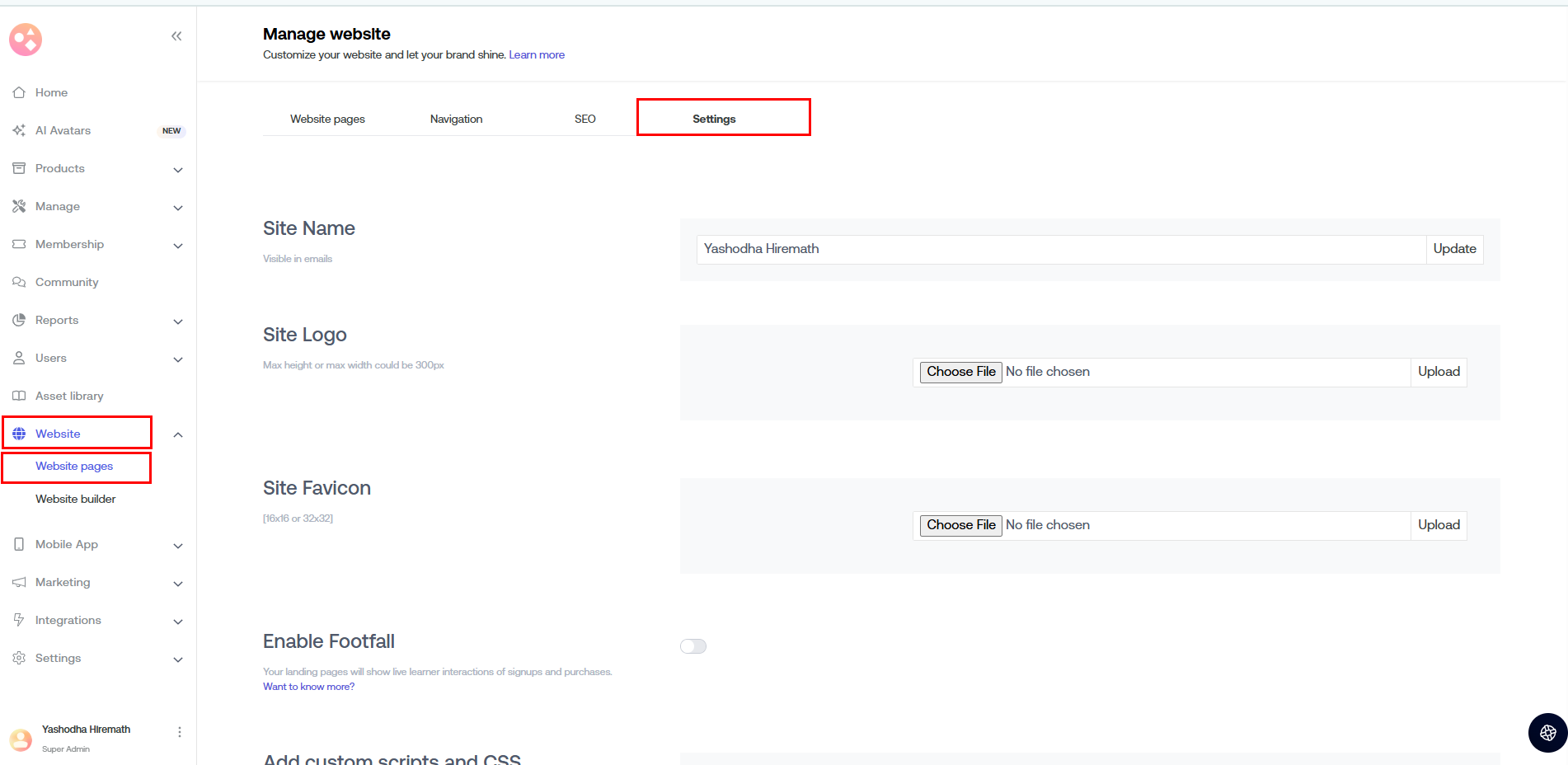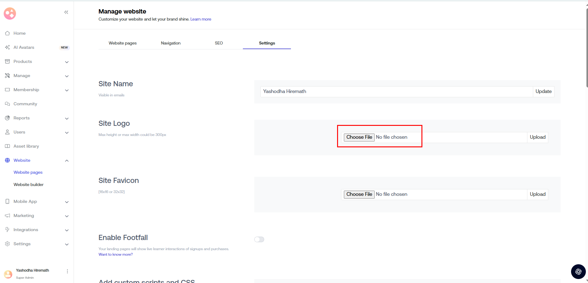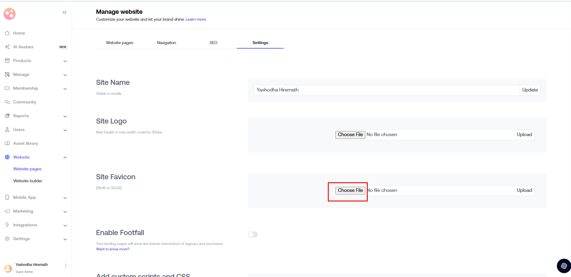 Your site icon, as well as site favicon, is the virtual representation of your institute's course website. The icon appears on the top of the web browser next to your platform's URL. Setting up your course website Logo & Favicon helps others to recognize your institute's brand.