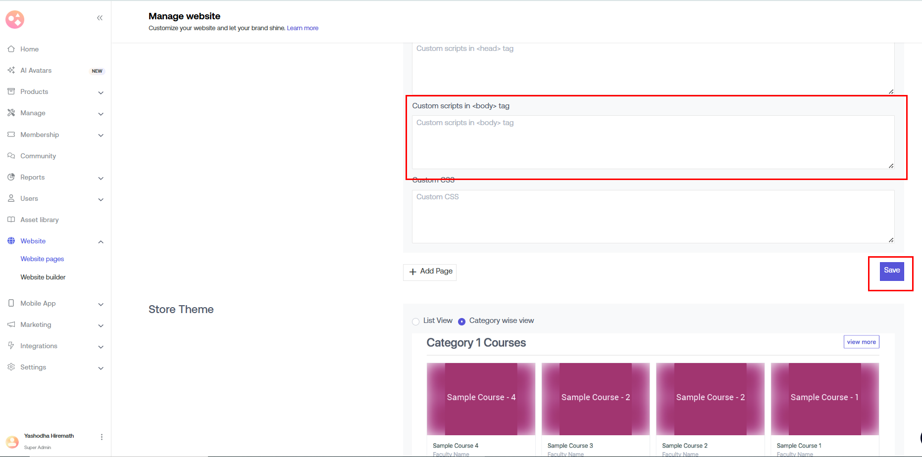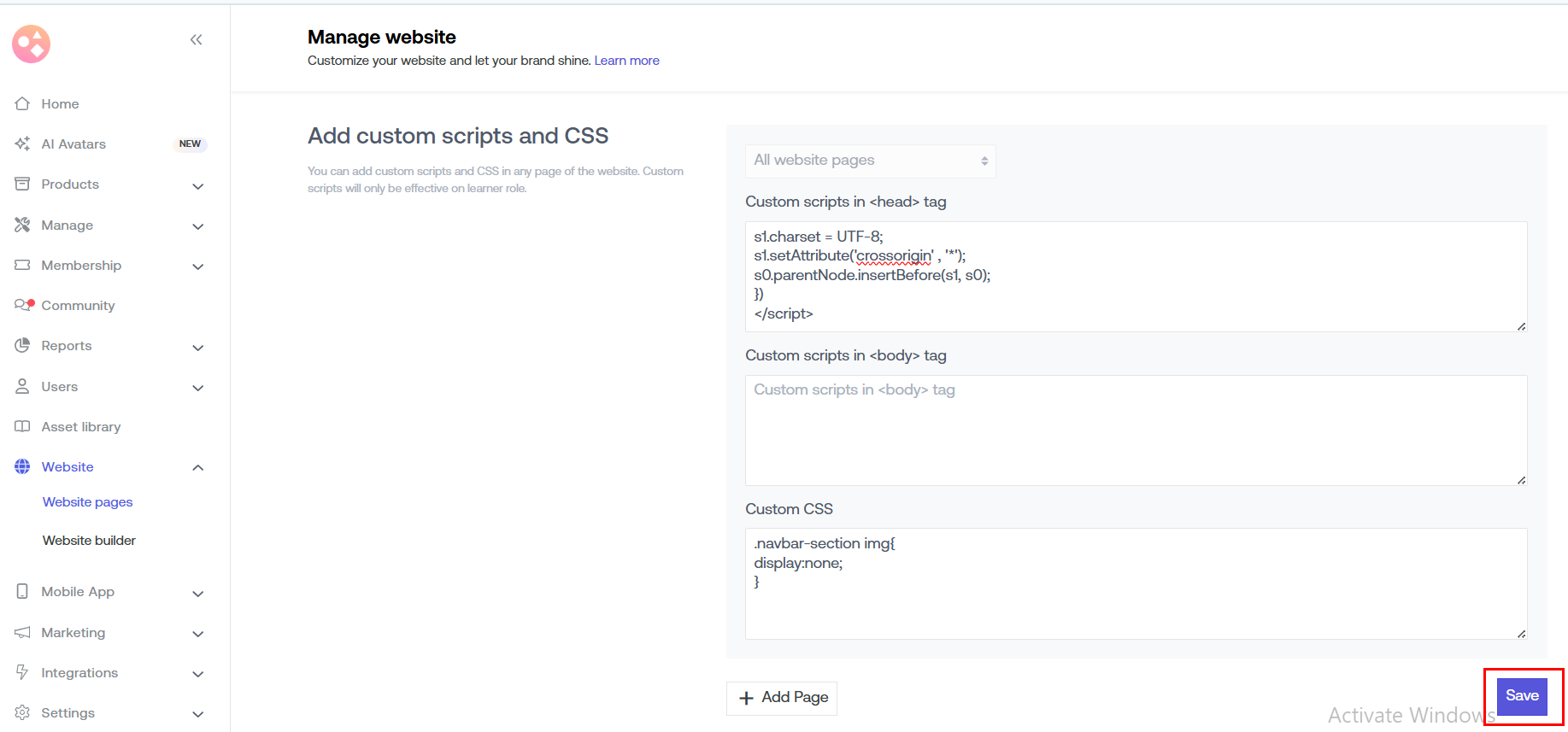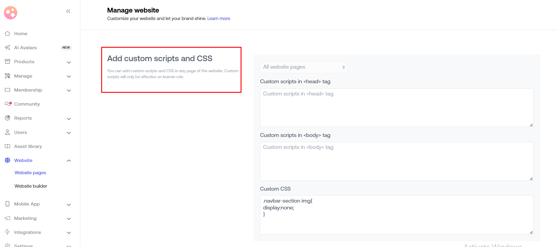 Scroll down & go to "Add Custom Scripts & CSS".