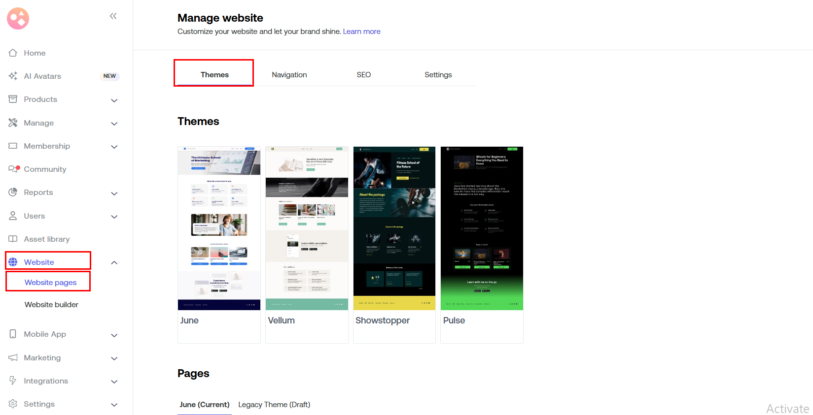 Go to the Dashboard > Website> Website pages > Themes.
