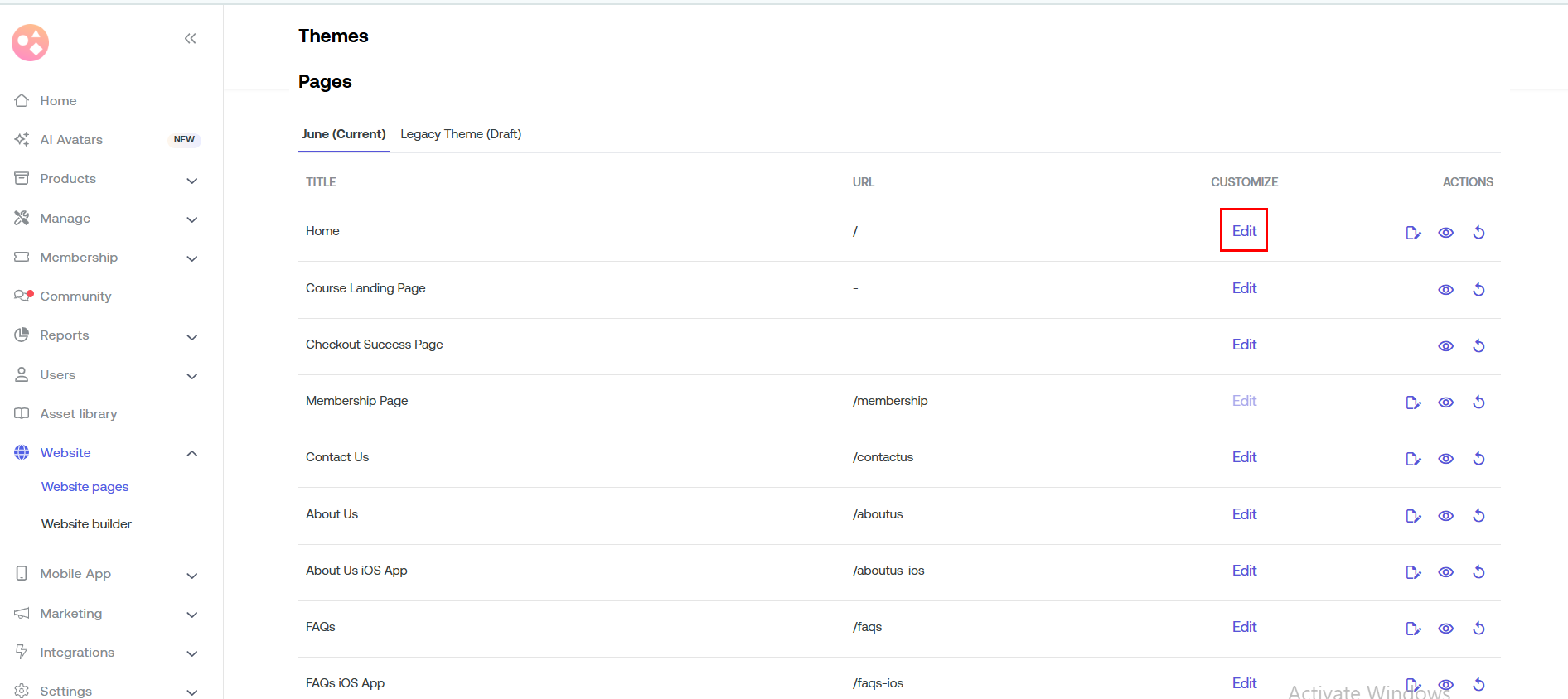 Go to your left navigation > Website > Website pages> Settings