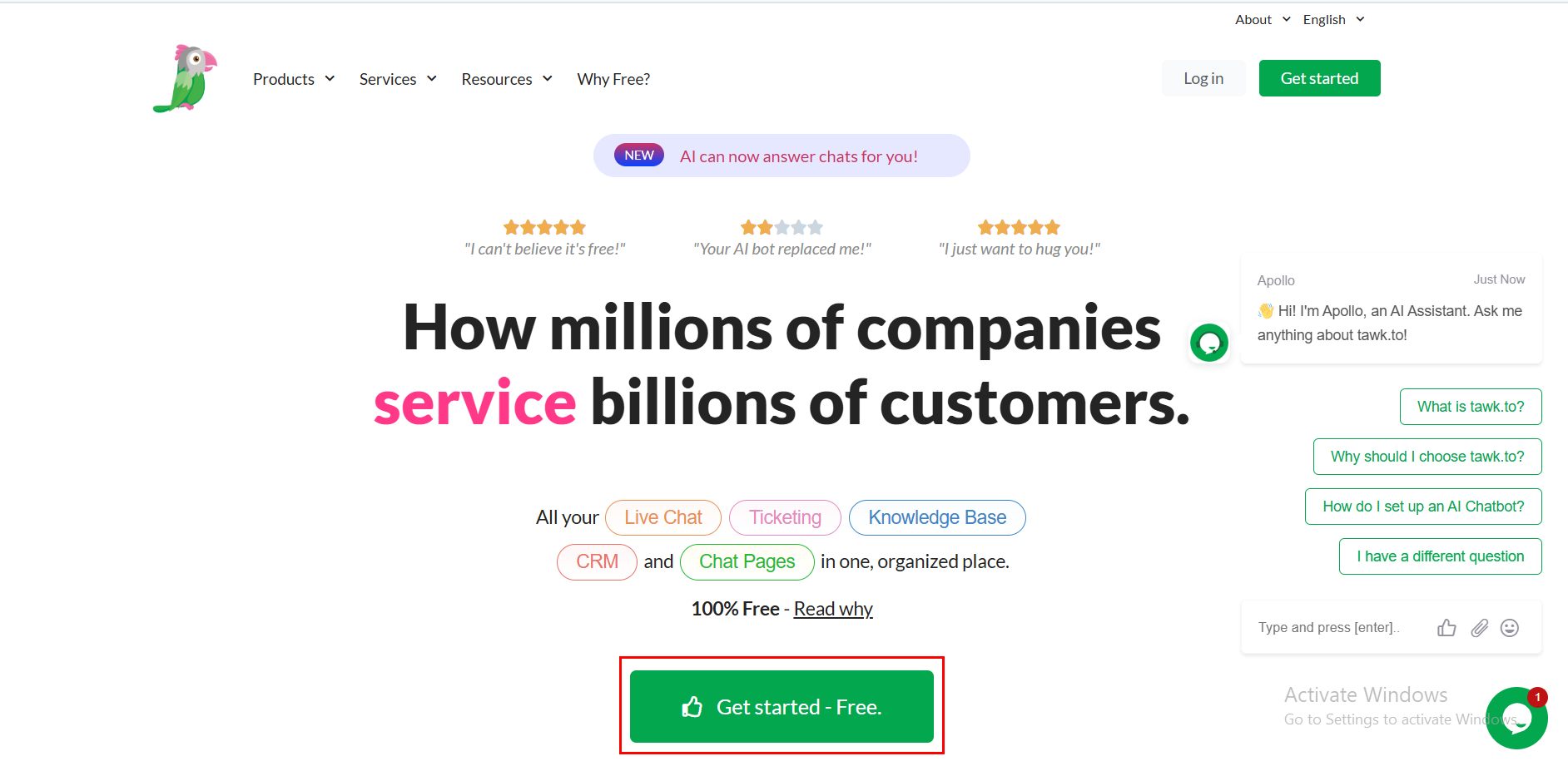 Go to the Tawk.to website & Get started.