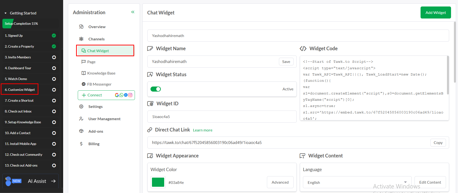 Just click on the "Customize Widget" then go to "Chat Widget".