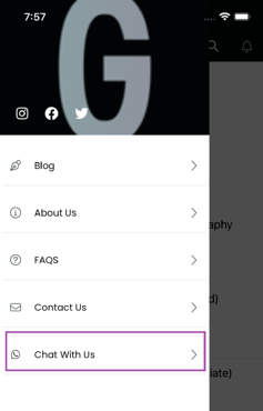 2. If your learner has installed your institute's app on their smartphone, they can click on the 'Chat with us' option as shown in the screenshot below & can initiate the conversation.