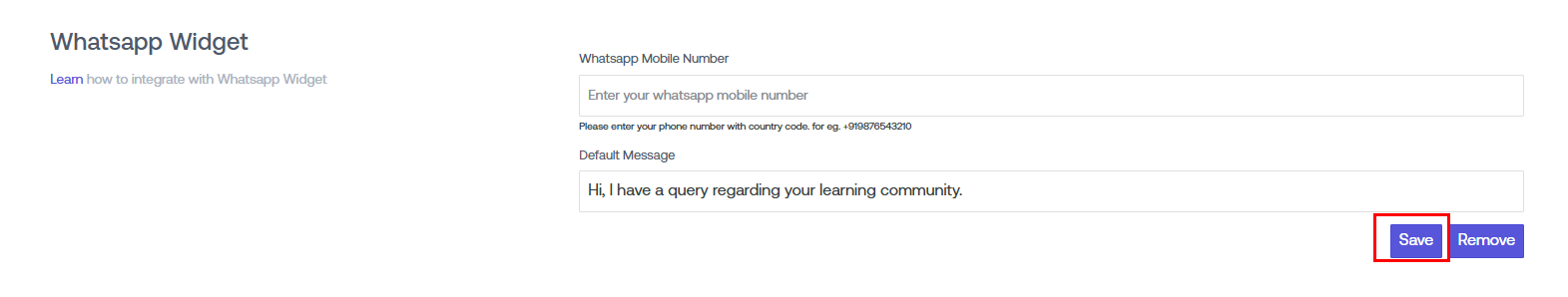 After filling in the mobile number and default message, click on the ‘Save’ button.