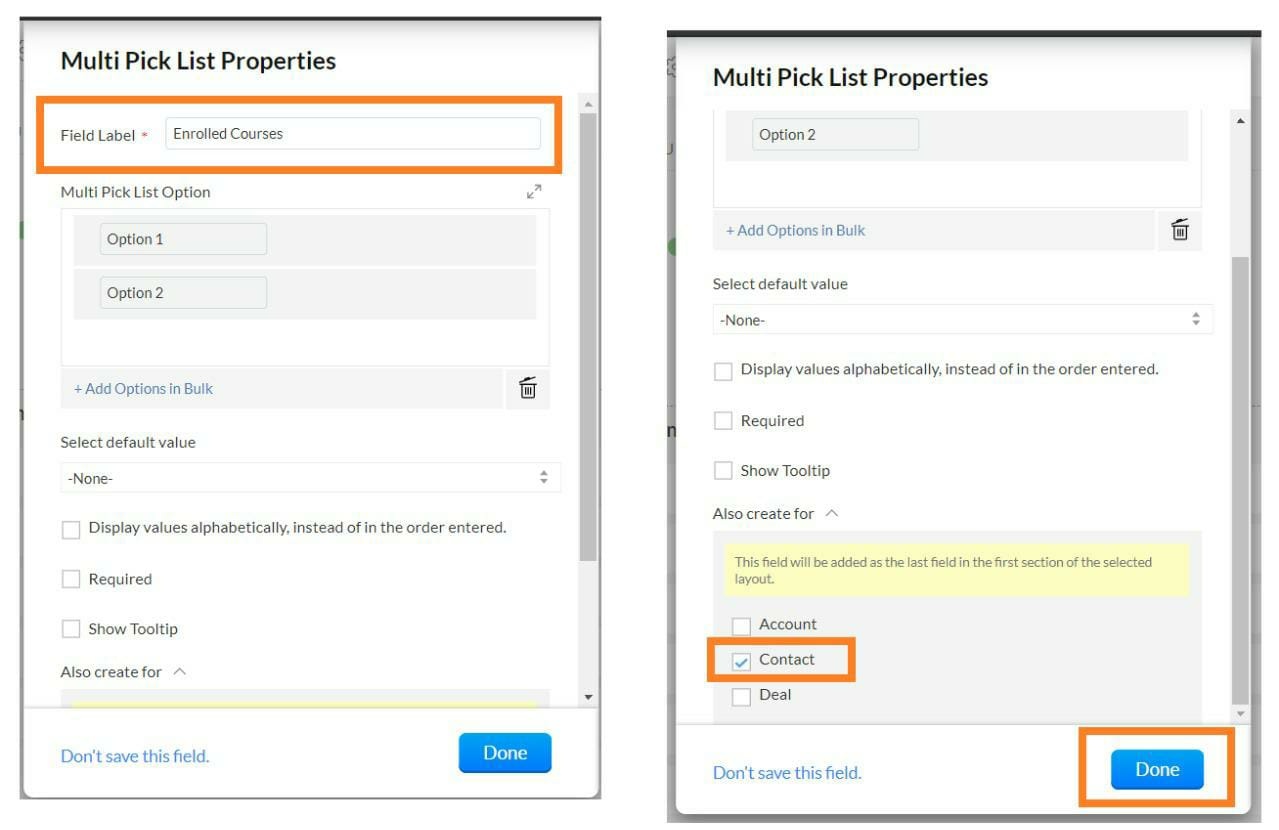 Now, under Field Label, type out "Enrolled Courses". Please note that the field label is case-sensitive.