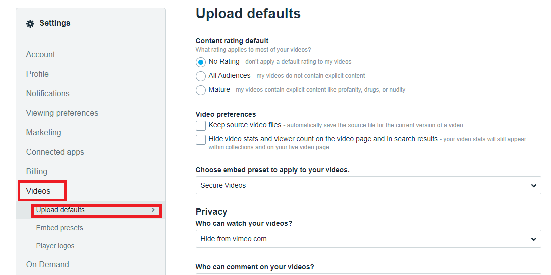 This article talks about the essential settings to be done within your Vimeo account in order to smoothly integrate it.