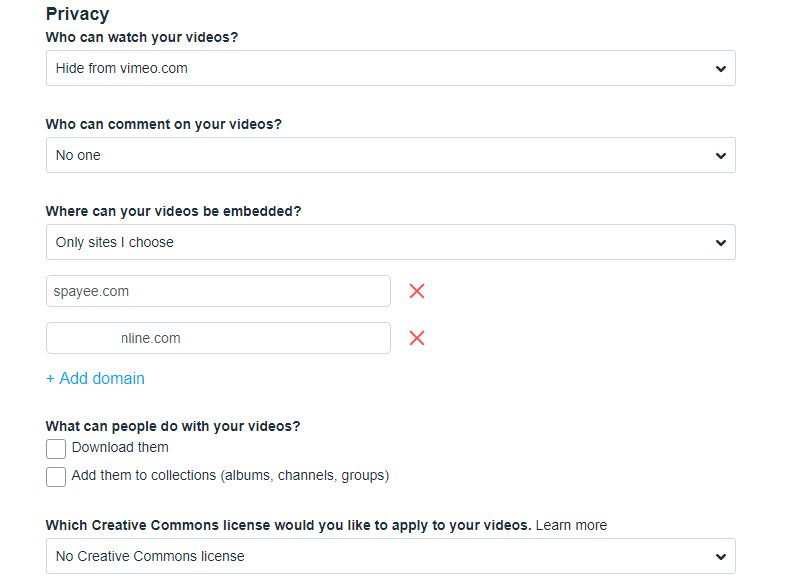 - Where can your videos be embedded?- Only sites I choose. Now enter 2 URLs. First would be “seekhly.com”, another would be “YourCustomURL” which you use for your course platform.