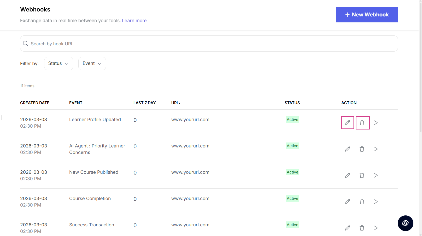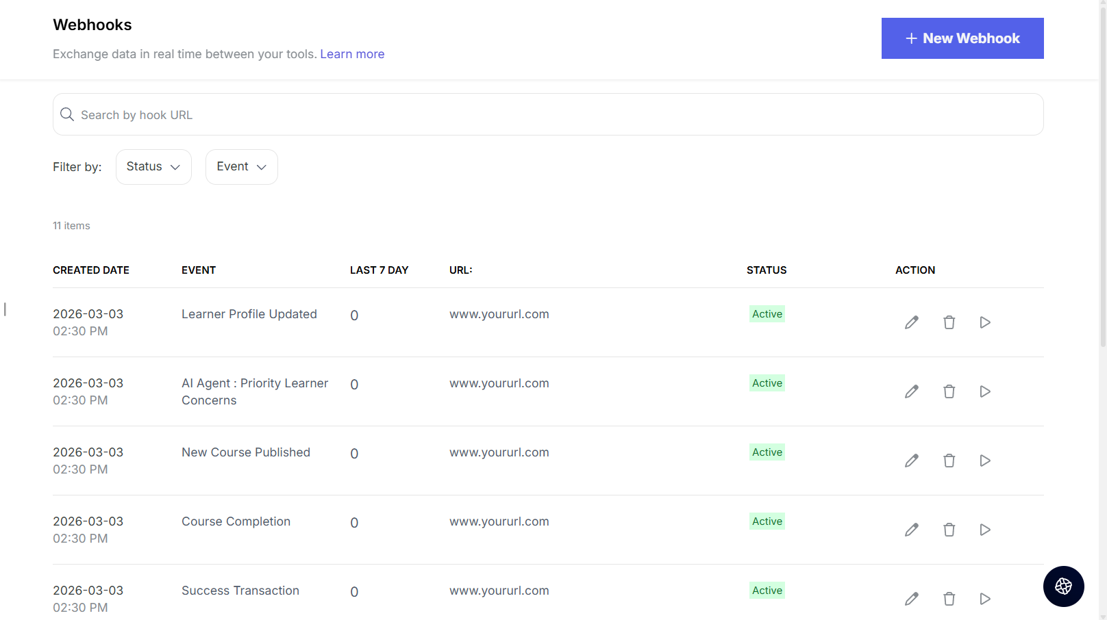 - New Learner Created: When a new learner signs up on your platform.