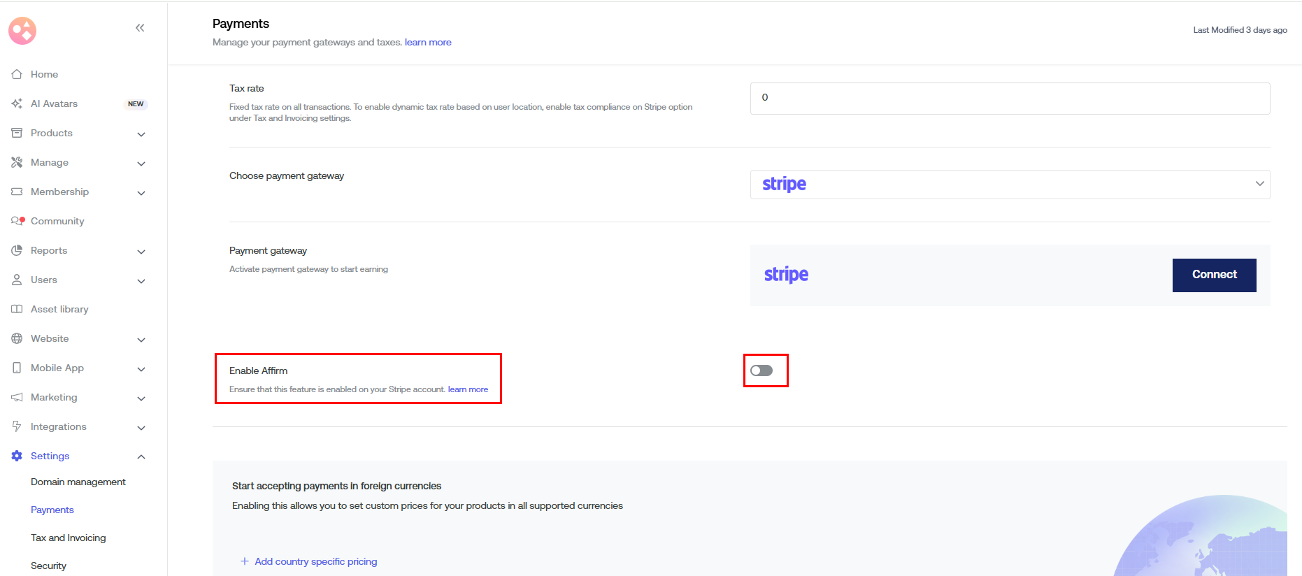4. Enable Affirm Toggle on the Seekhly Dashboard: