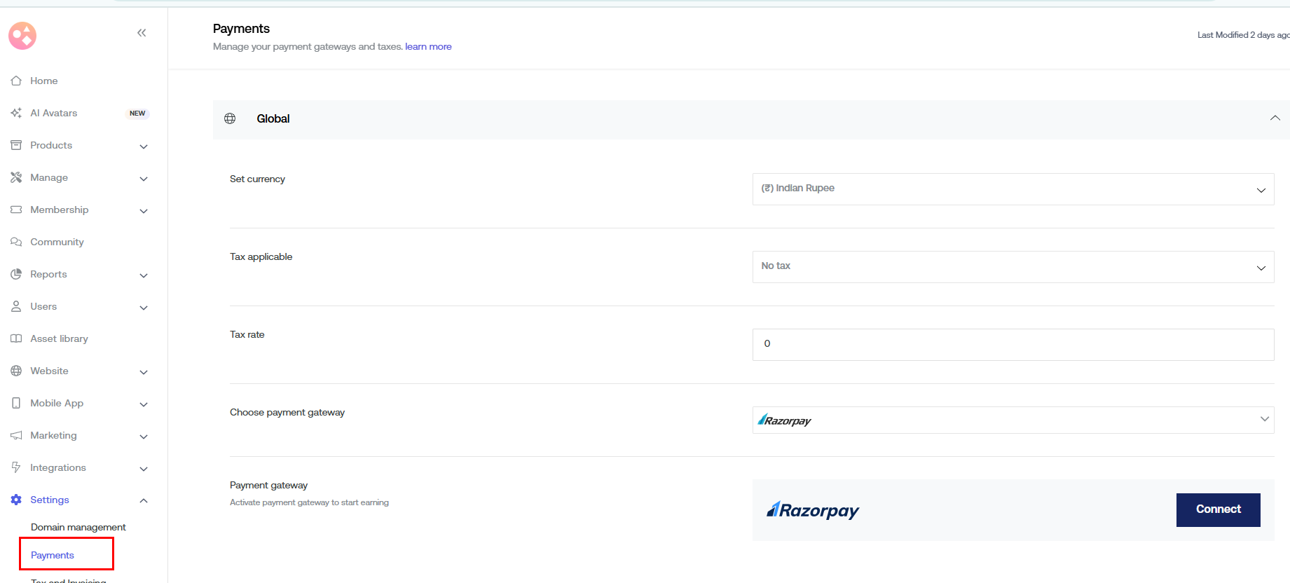 You can easily integrate multiple payment gateways within your course platform. This guide specifically talks about how to integrate RazorPay. For those of you who don't know RazorPay helps in collecting online payments for anything that you sell online or offline.