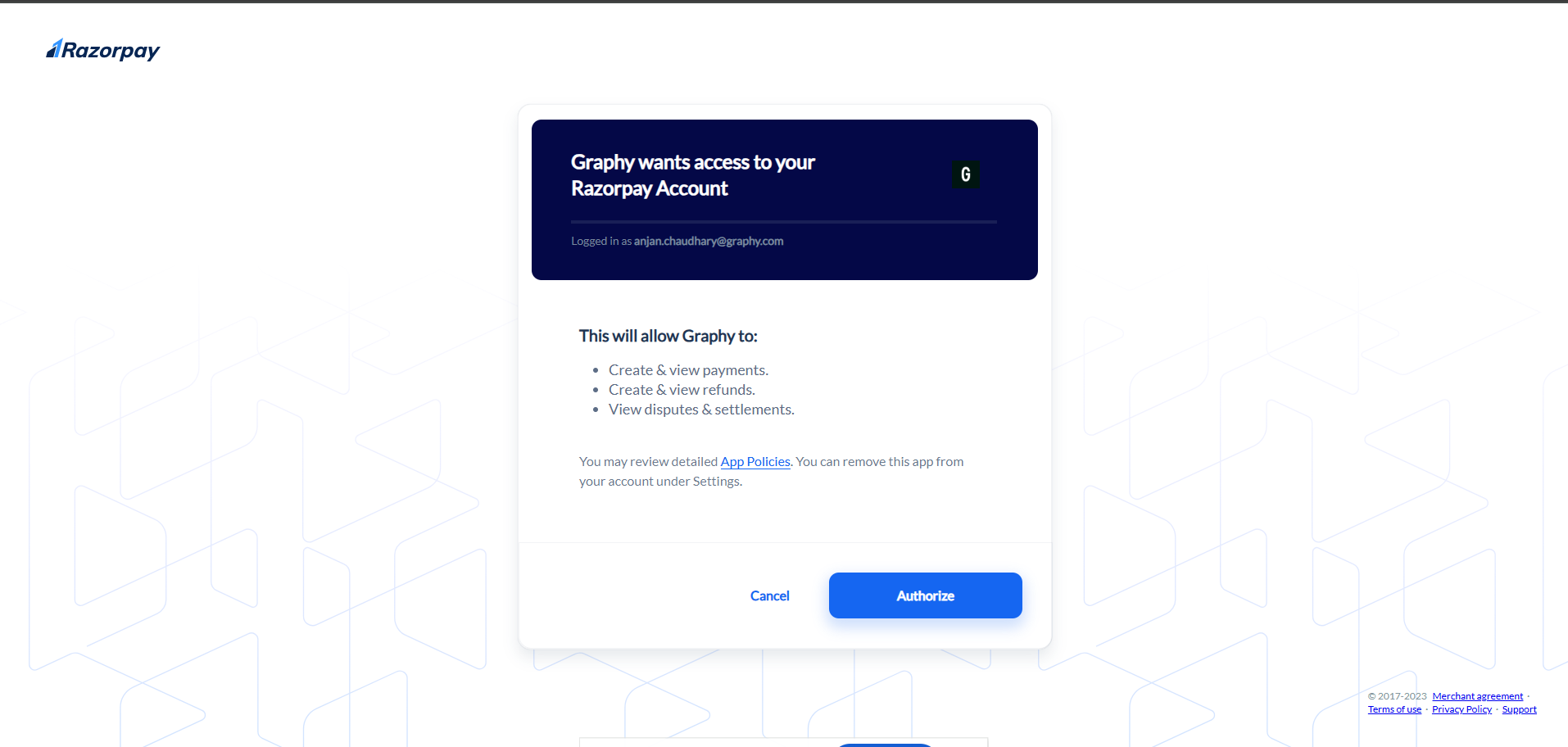You will land on the Razorpay login page on a new tab. Enter your credentials to log in to Razorpay.