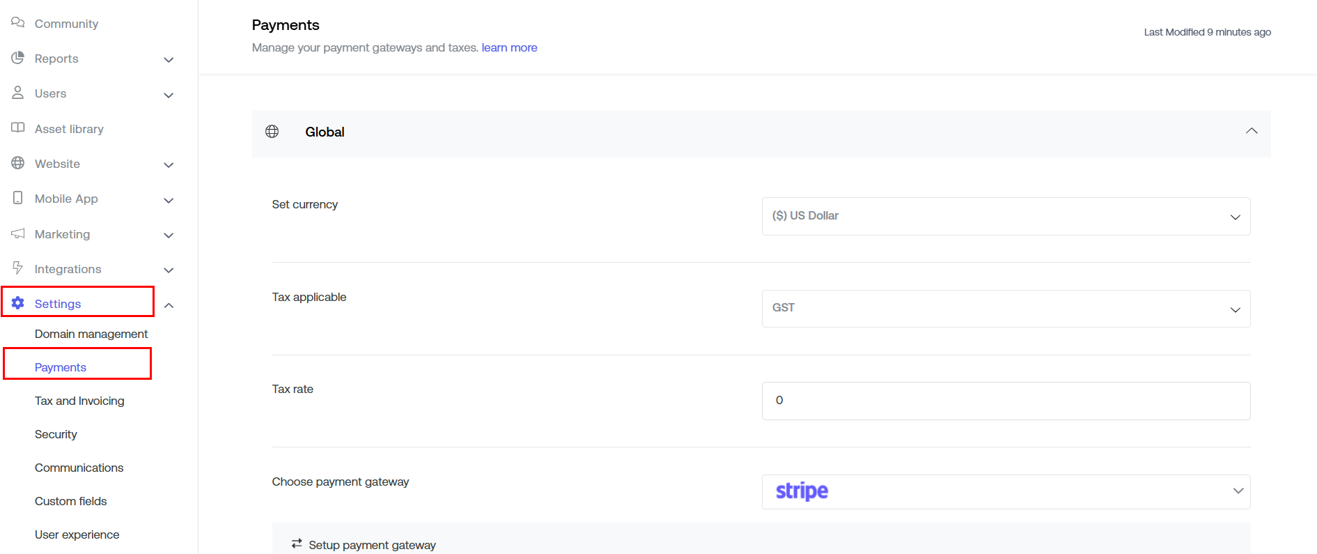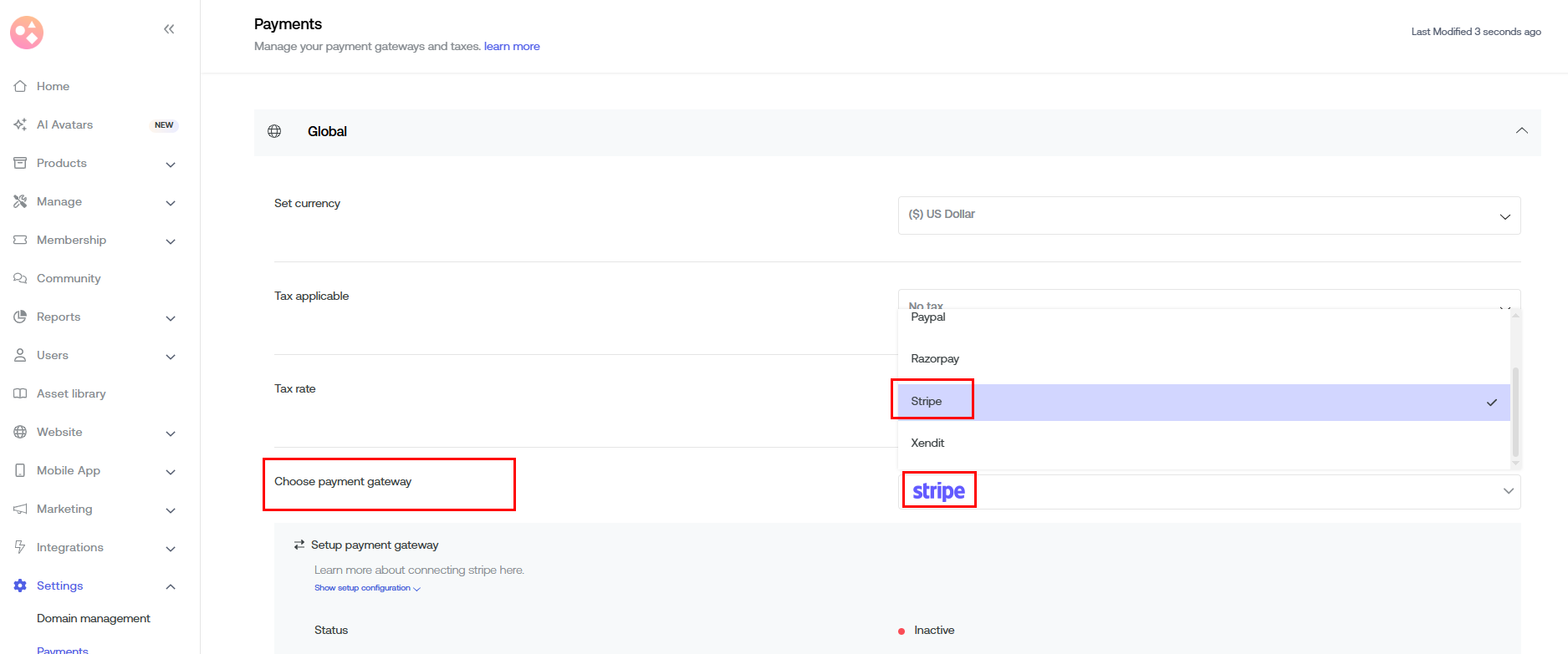 Scroll down to Choose Payment Gateway > Select Stripe from the dropdown.