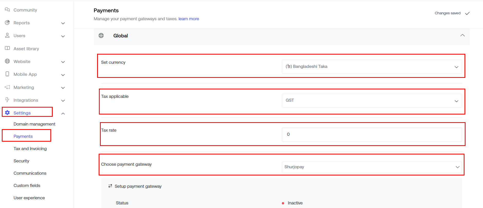 Add the currency of your choice and choose the payment gateway shurjoPay from the 'Payment Gateway' drop-down menu.