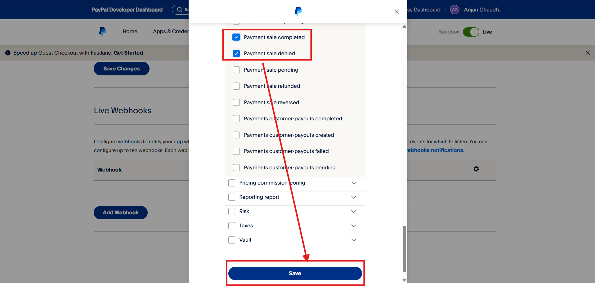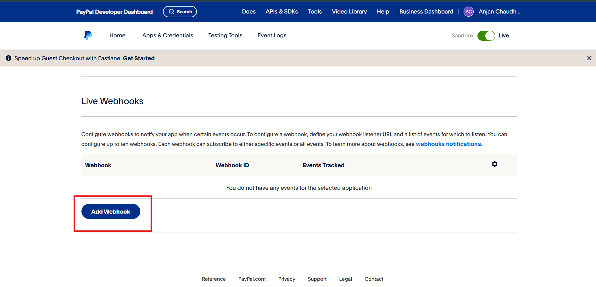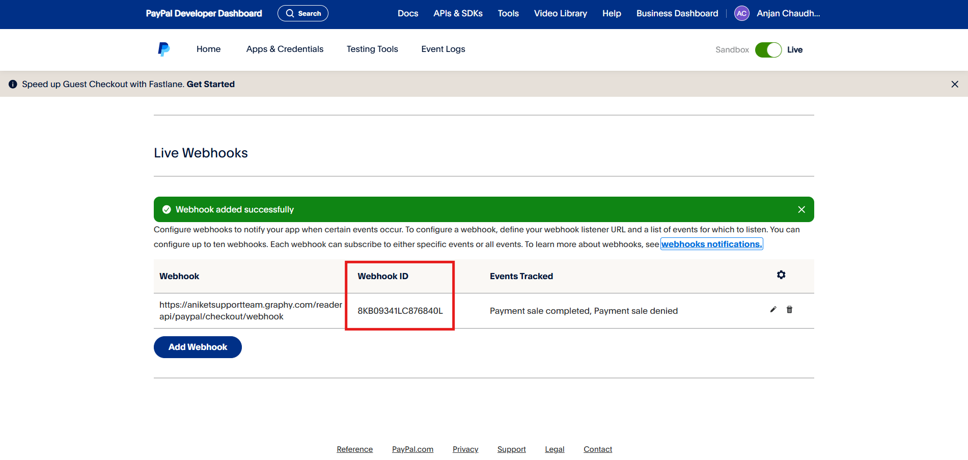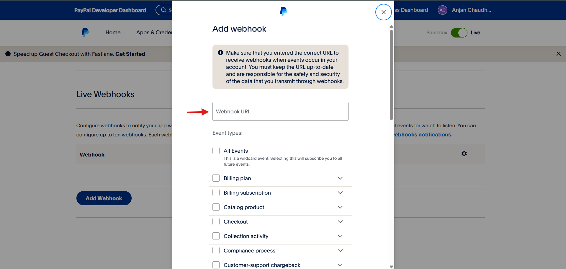 Copy the Webhook URL & come back to the Paypal tab.