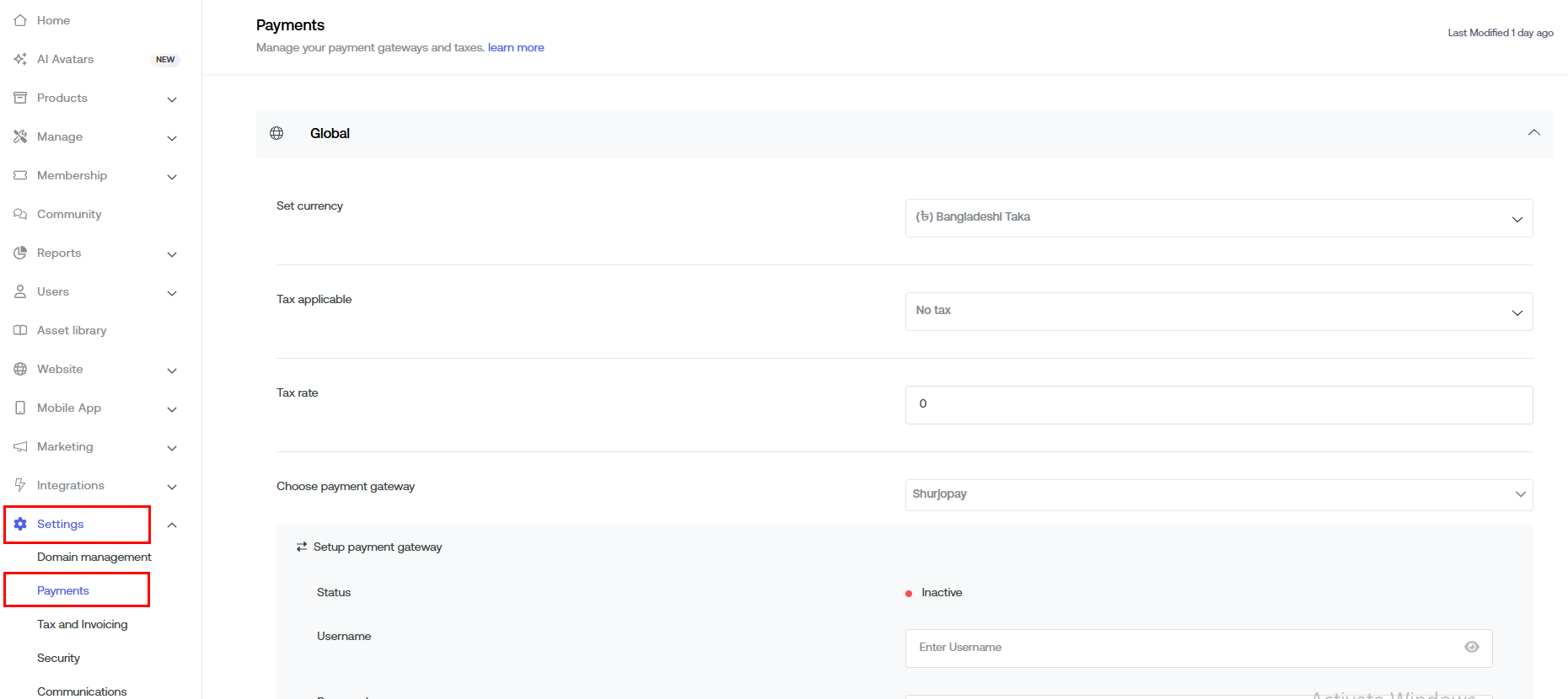 Go to your Dashboard > SETTINGS > Payment.