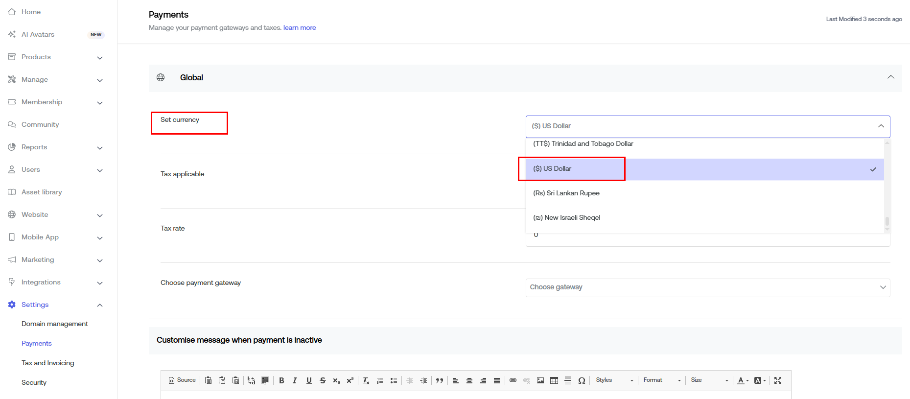 Choose the currency you would like to collect payment in. If the majority of learners are in the US, select "US Dollar".