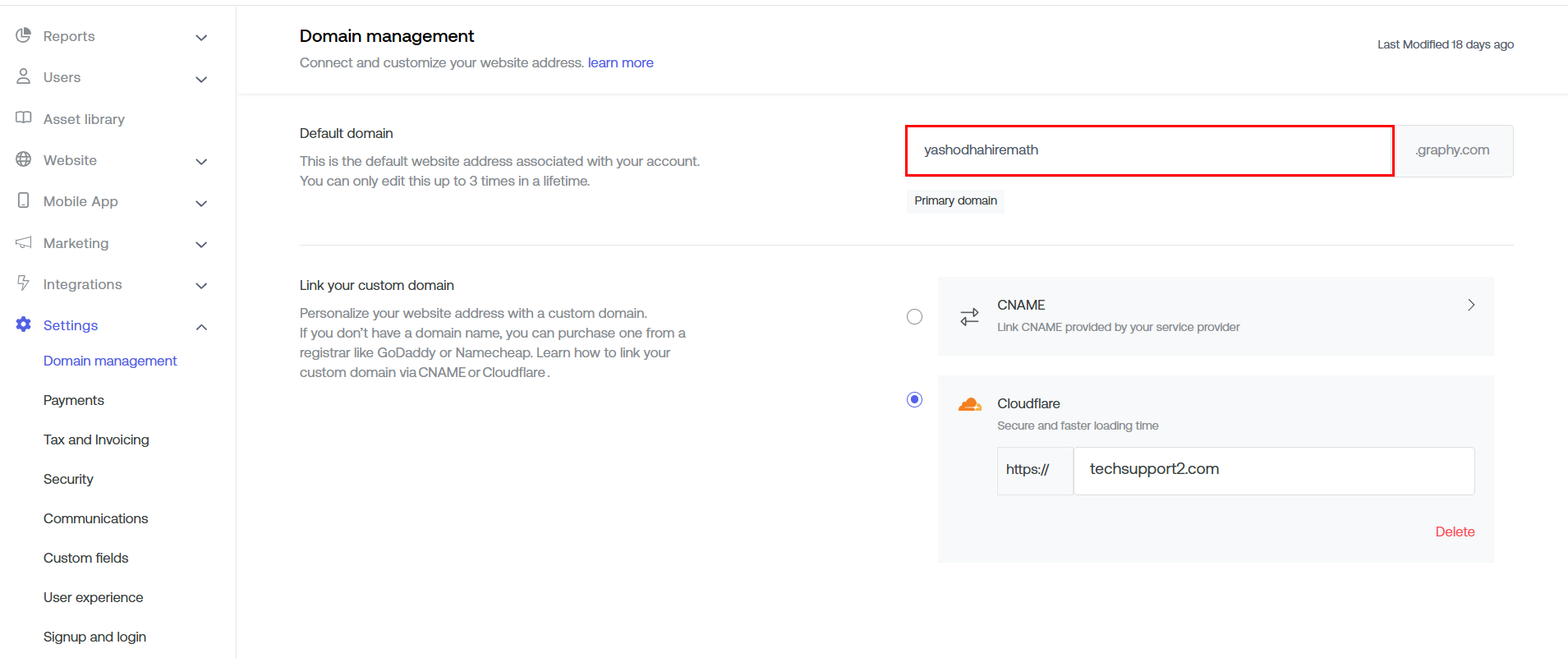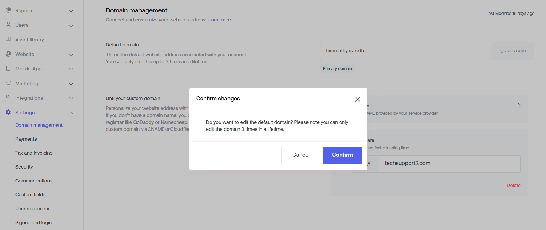 Note: You can only edit your domain name up to 3 times in a lifetime.