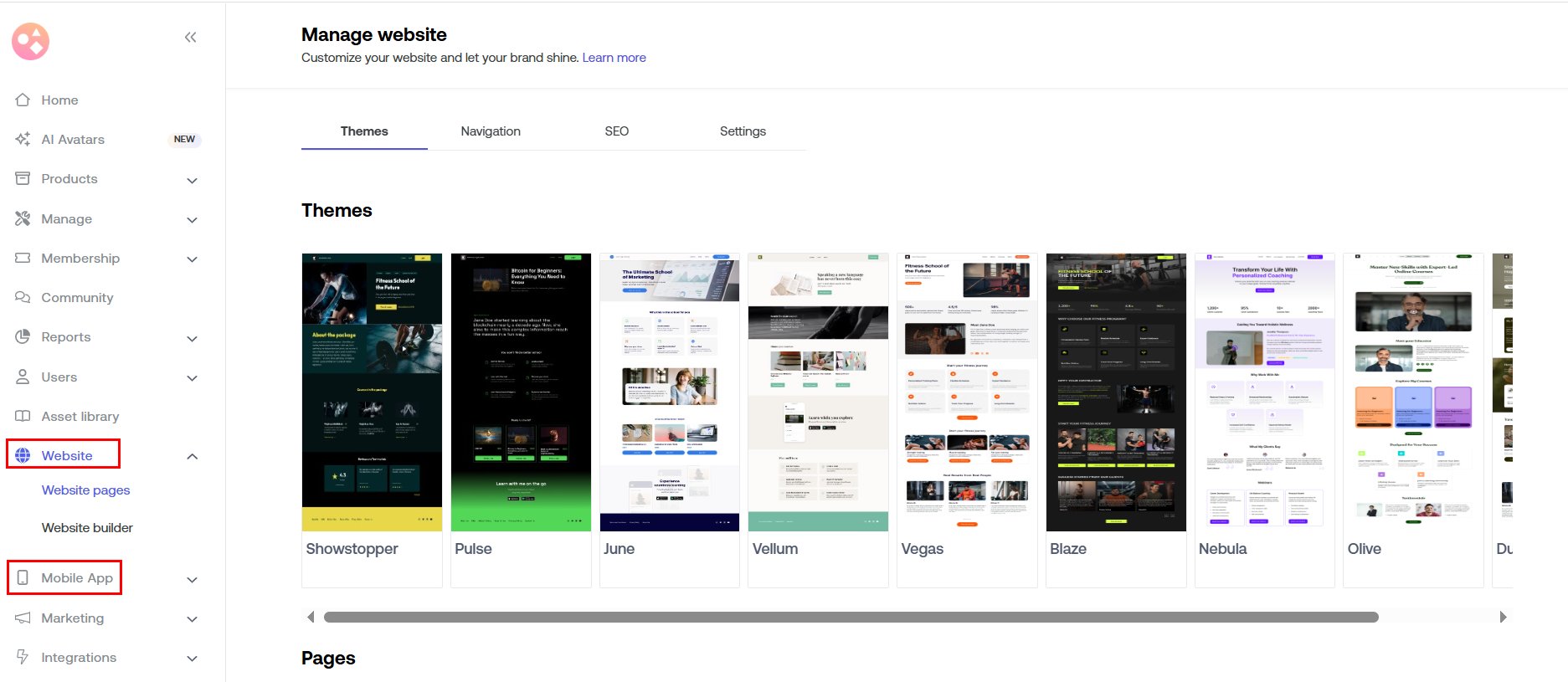 This tab offers creators an interface to create, edit, and organize various content types for their website and mobile application. Set your website and app according to your brand guidelines.
