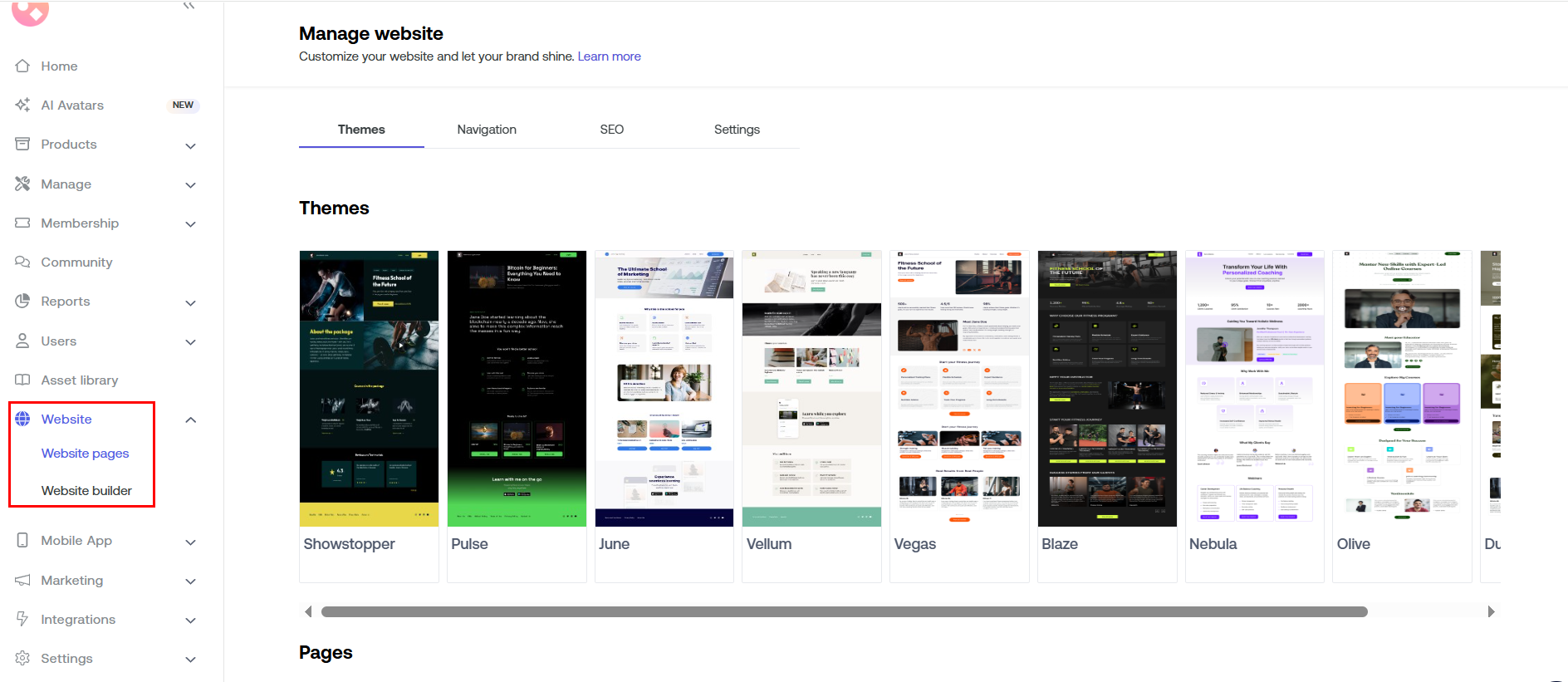 - Website builder: Create new web pages and design as per your needs. Showcase your courses, blog posts, or any other relevant information. It includes: