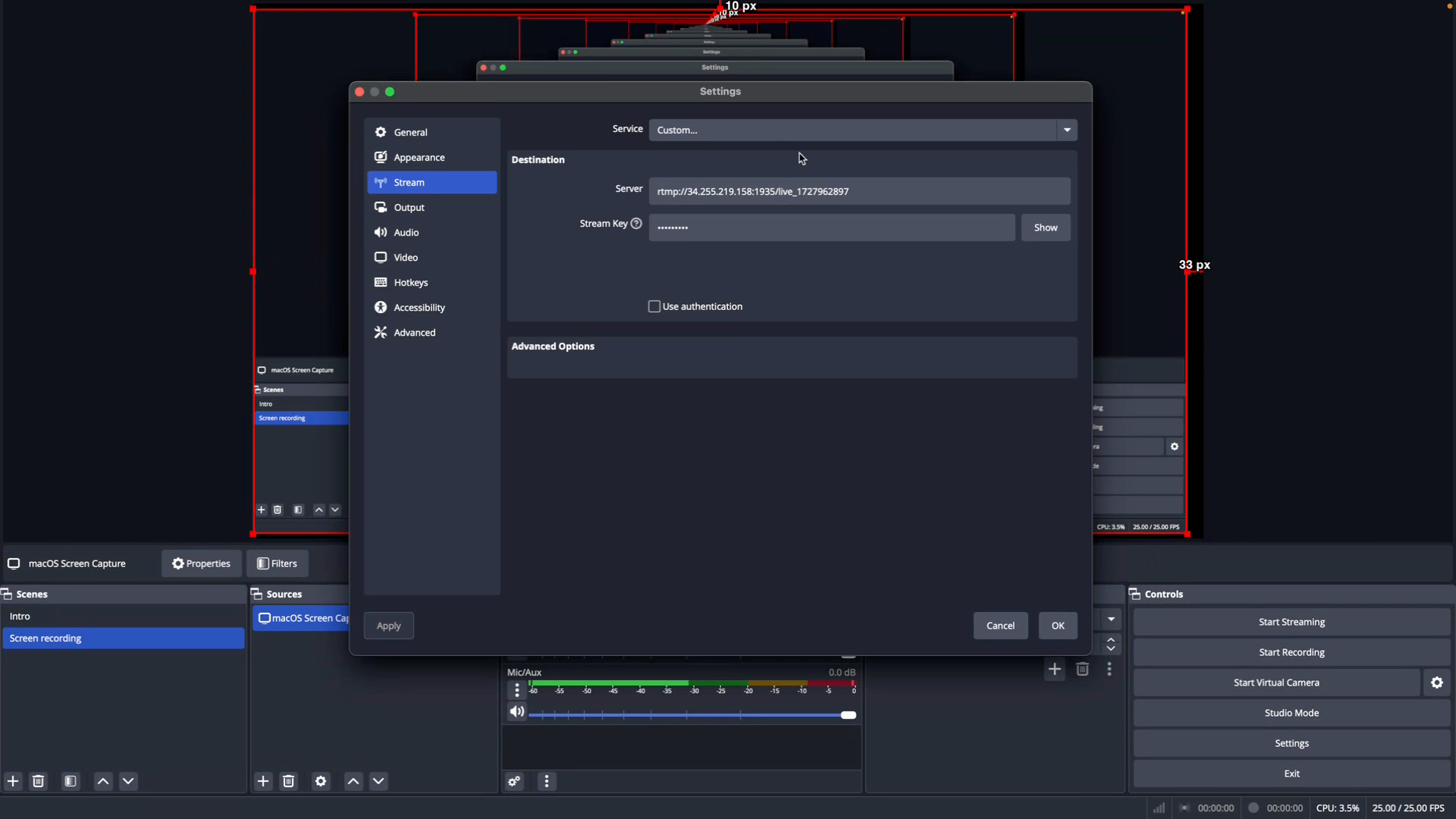 Step 13: After adding all the details, set up the advanced settings as needed. Click on "start streaming" to begin.