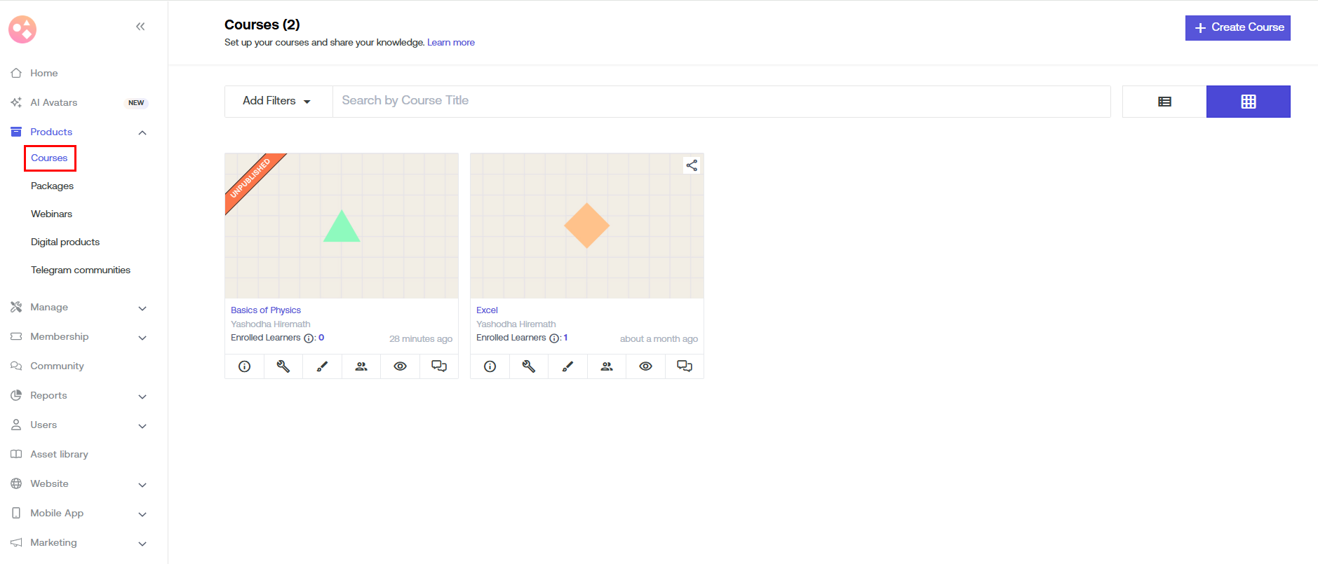 Step 3: Click on the Create Course button and then enter the title of the course.