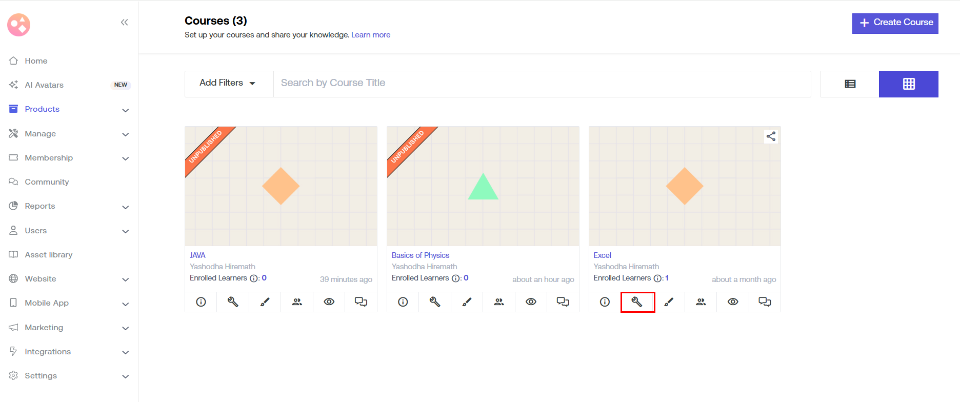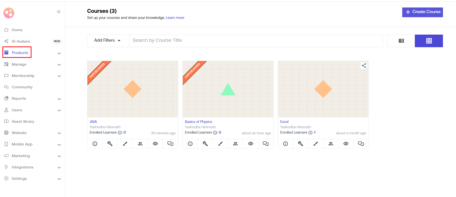Step 1: Go to your Seekhly dashboard and click the products icon from the left navigation.