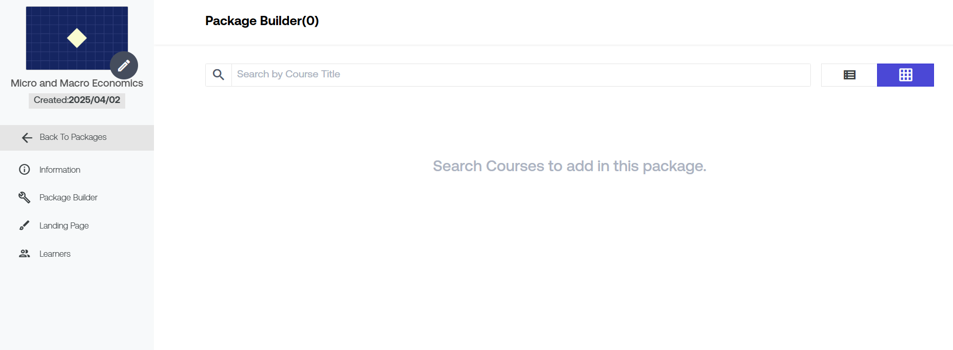 Once the package is created, click on "Package Builder" to add courses to the package.