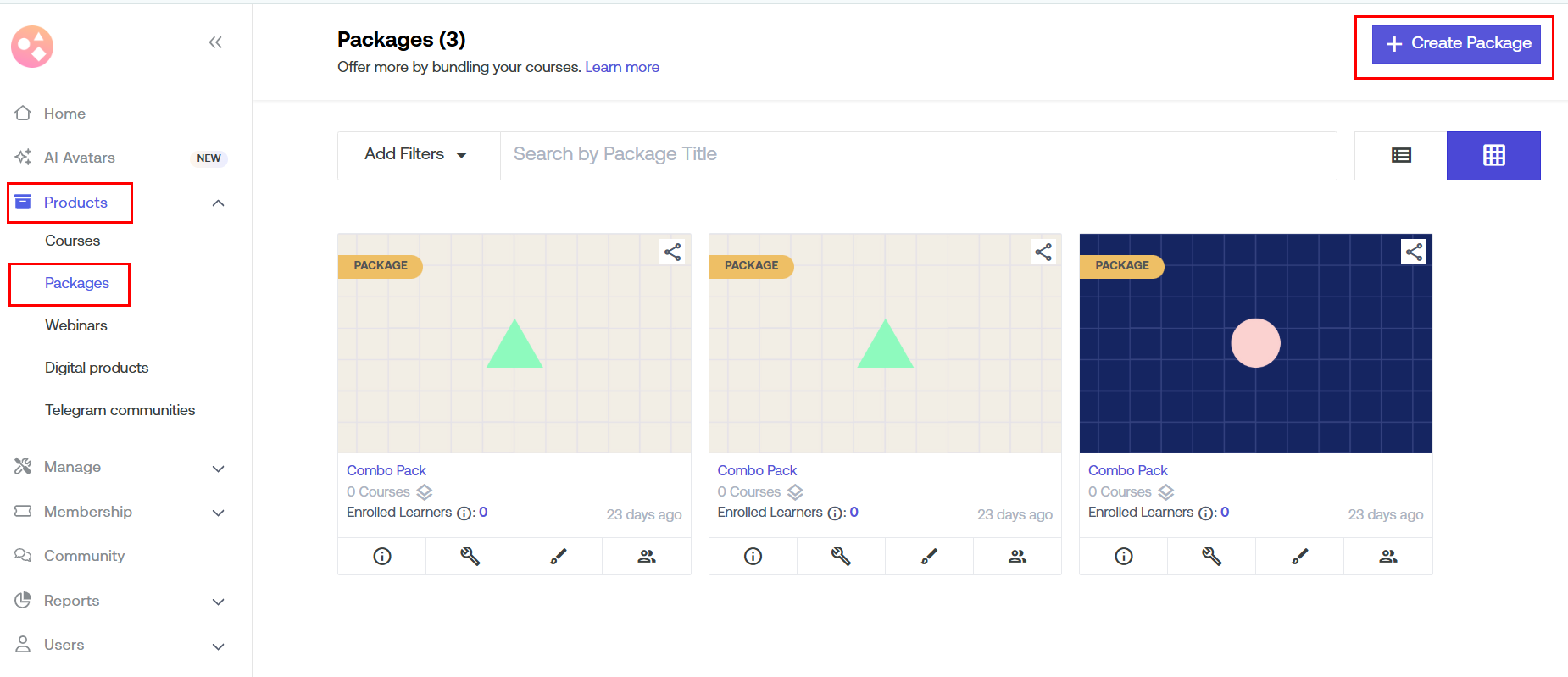 Through course packages, you can offer a combination of two or more courses to your learners at a different pricing & validity structure.