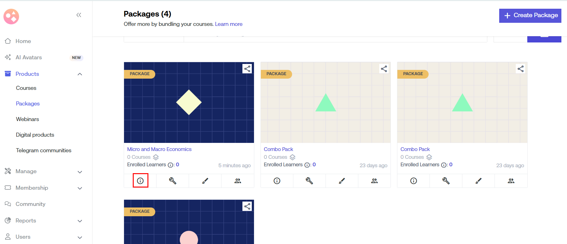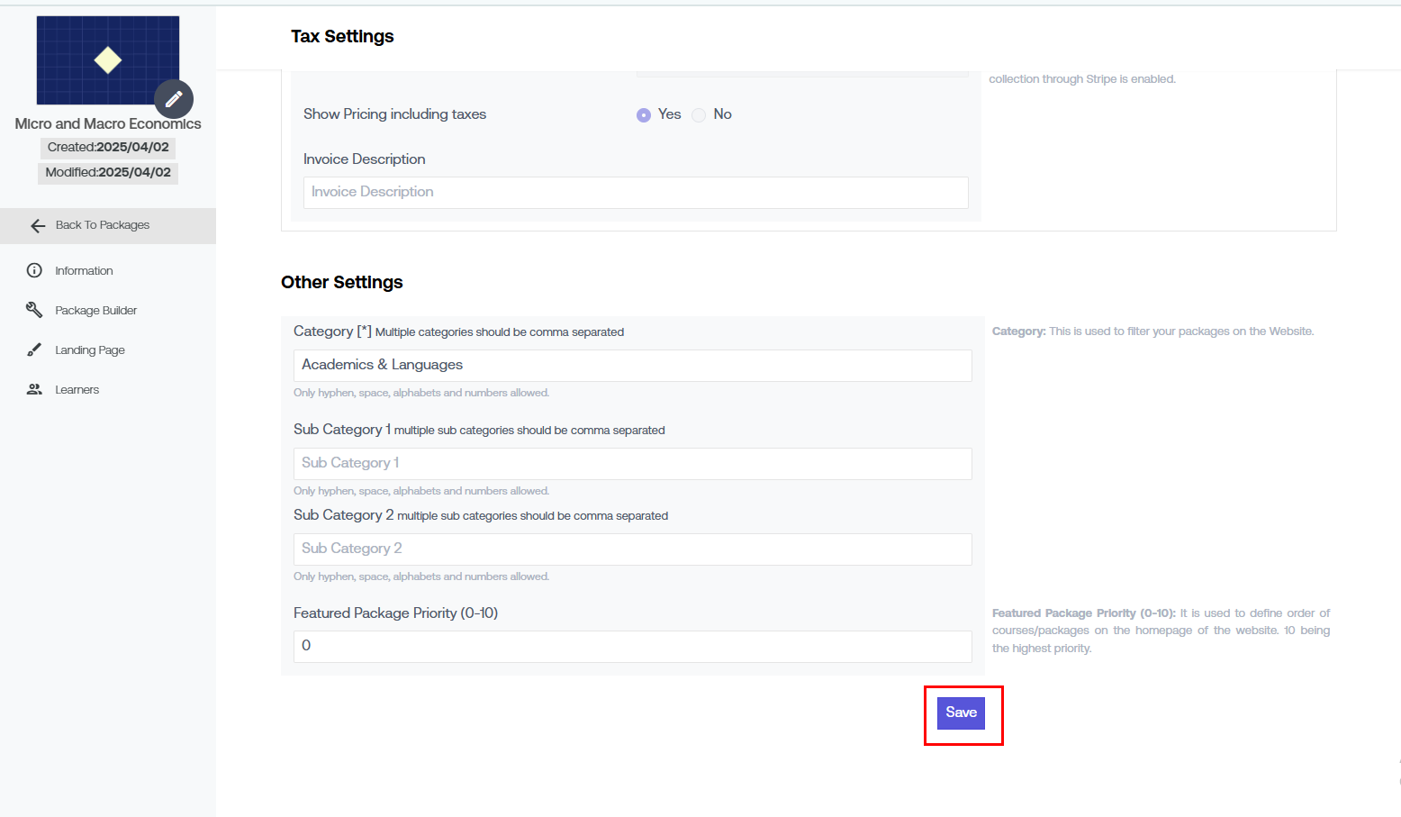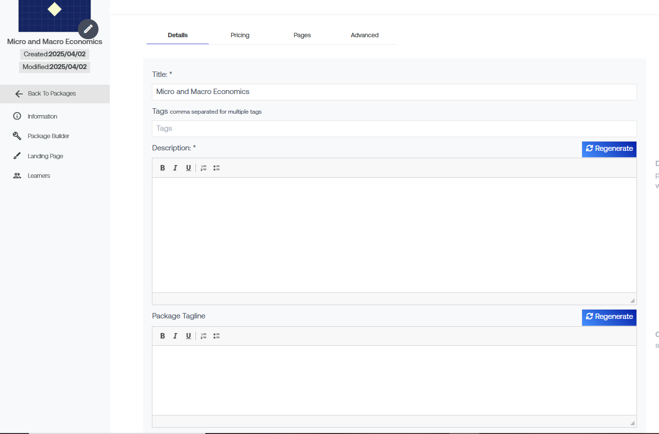 Once you have created the Course Package, you can establish other important details before learners begin to purchase them.