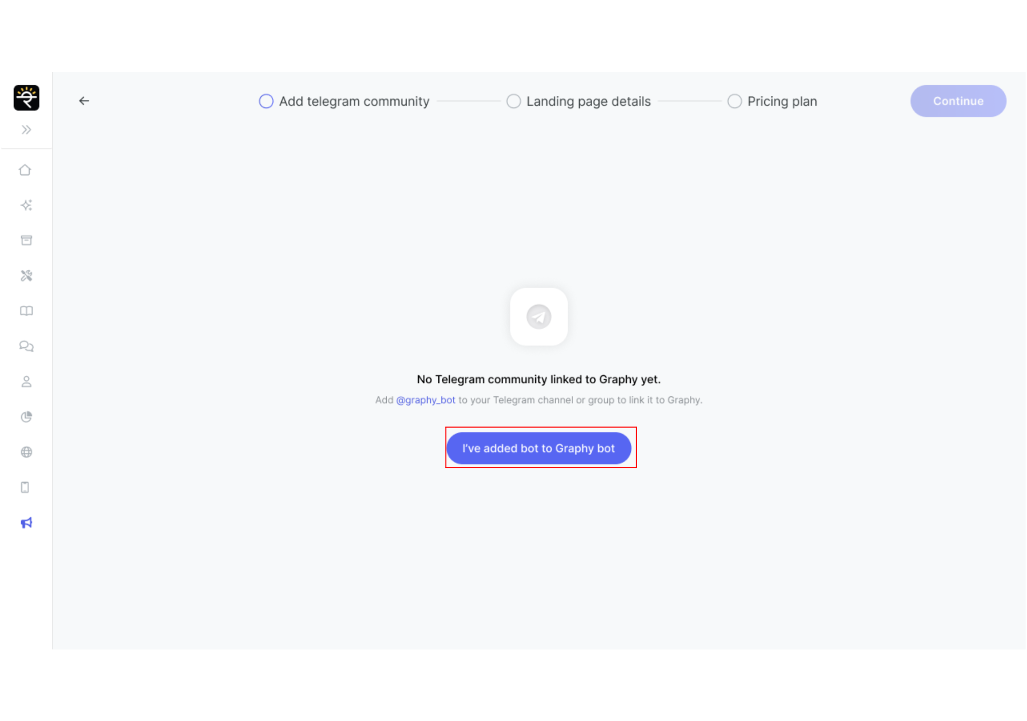 Once you've added the bot as an administrator in your Telegram group or channel, click "I've added bot to Seekhly bot" to continue.