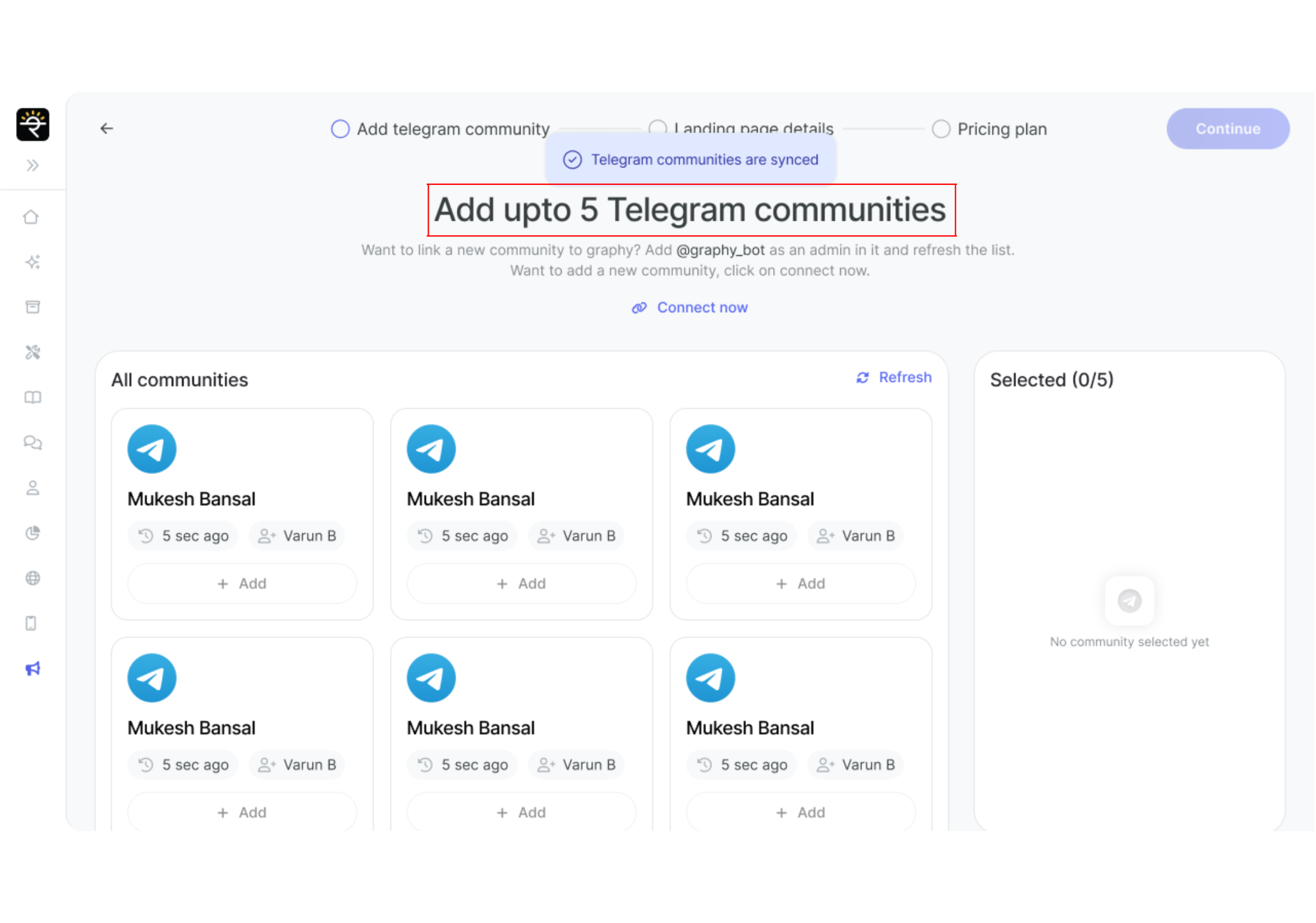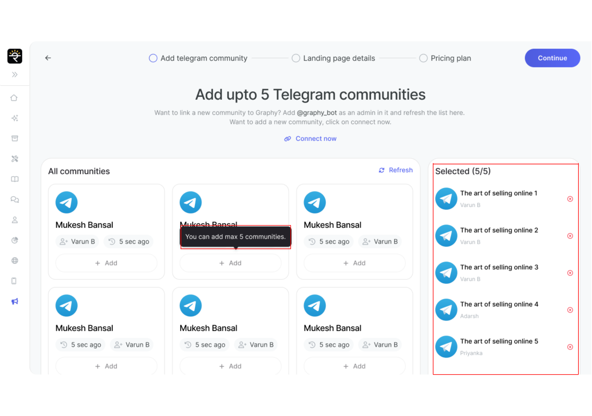 Once you have selected all the communities you want to add, click "Continue" to proceed to the next step.