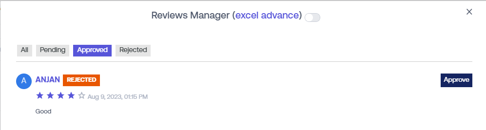 On the "Review Manager" page, you can view all the "Rejected", "Approved" & "Pending" reviews of the course.