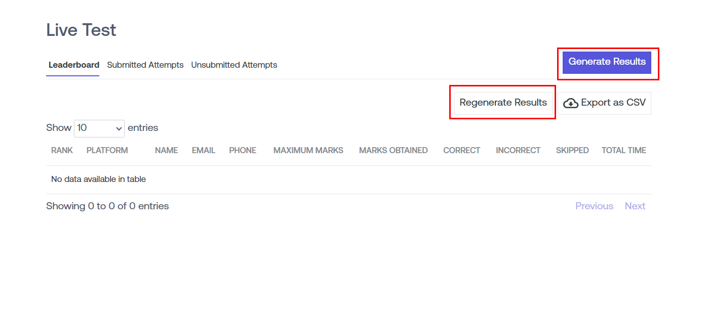 - Regenerate or Export Results: You can regenerate the results or export them as a CSV file for further analysis.