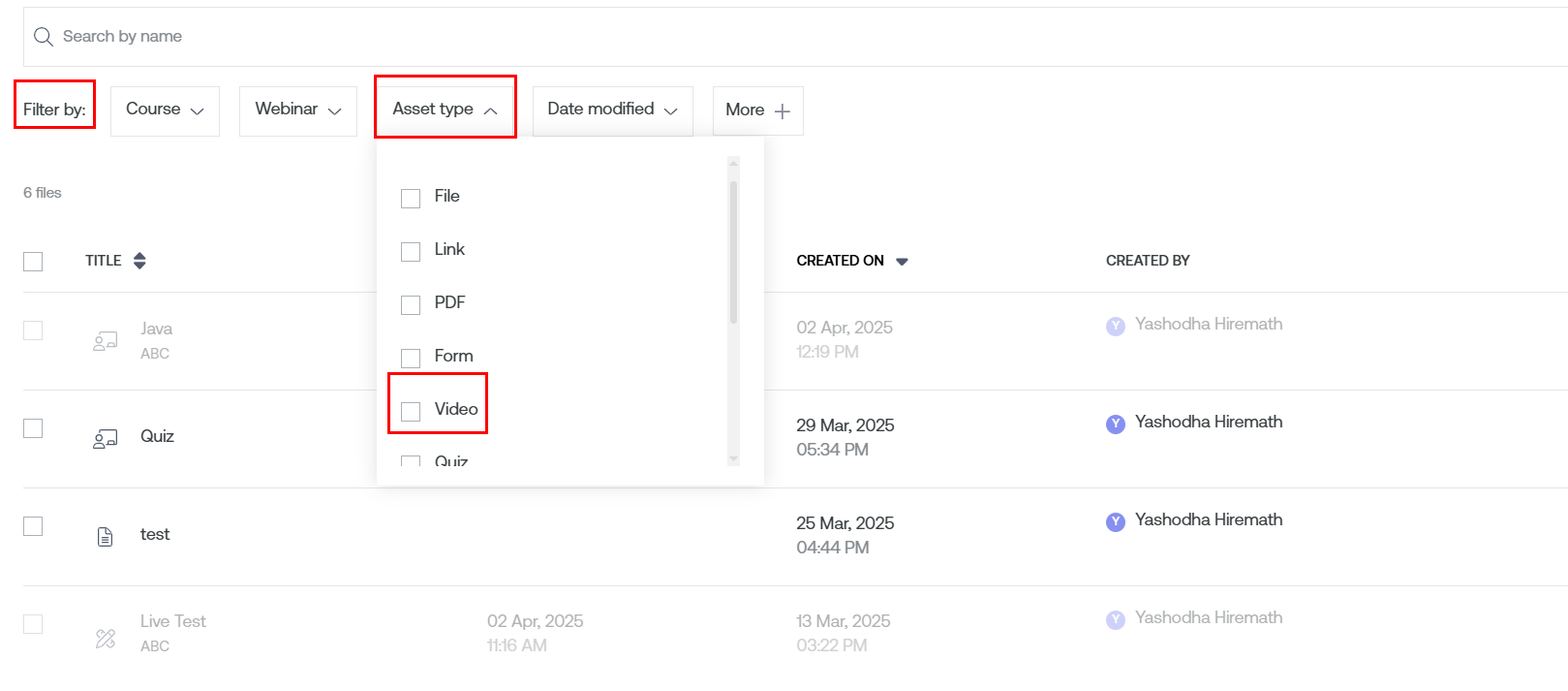 In the Asset Library, you can easily spot your Live Class Recording.