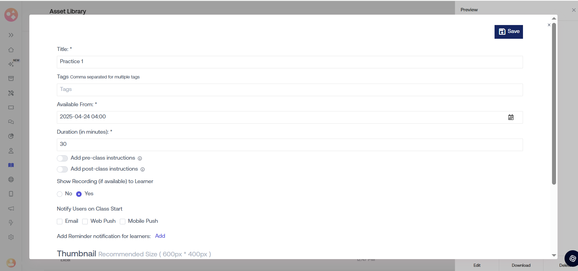Show Live Class Recording to Learners